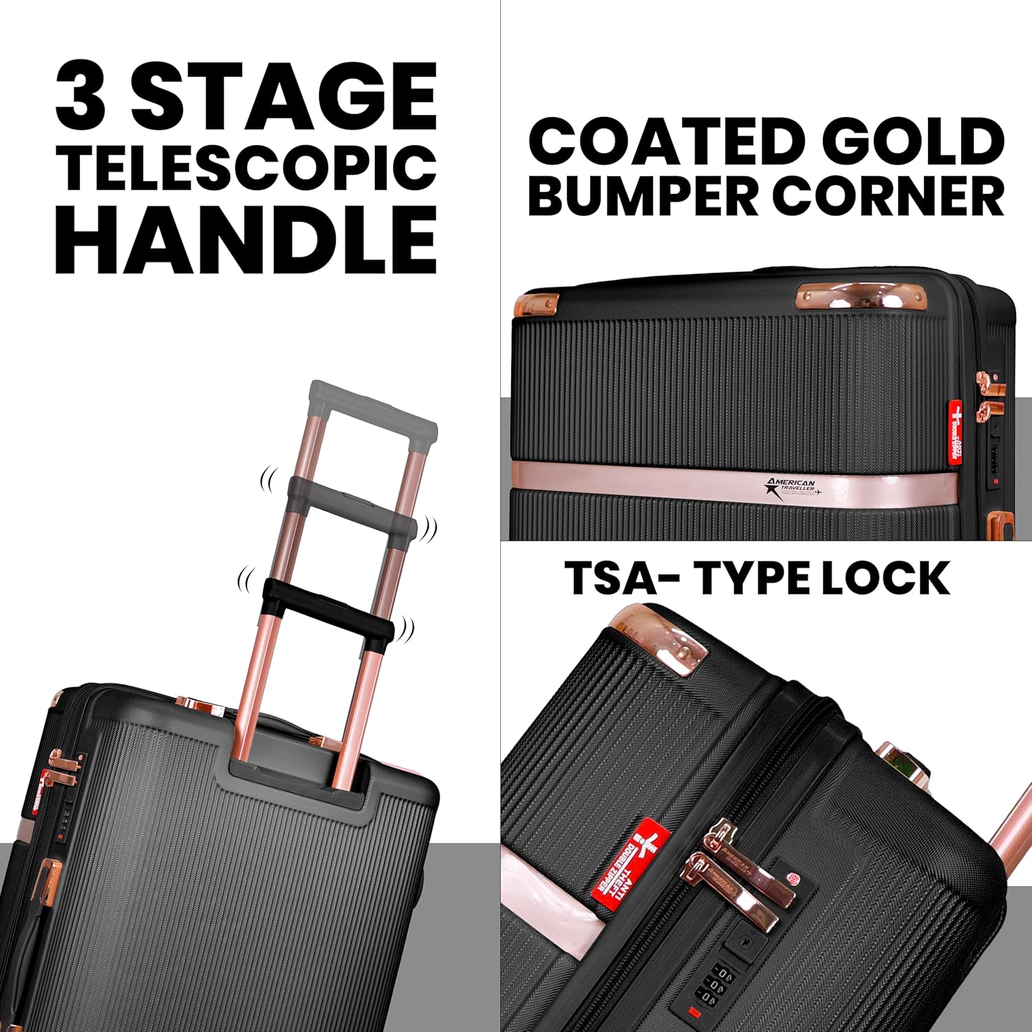 AMERICAN TRAVELLER Urban Gold ABS Hardside Luggage Set, 5-Piece, Grey with Rose Gold Accents, TSA Lock, 8 Spinner Wheels, 730 Days Warranty (5, Black, T,F,S,M,L)