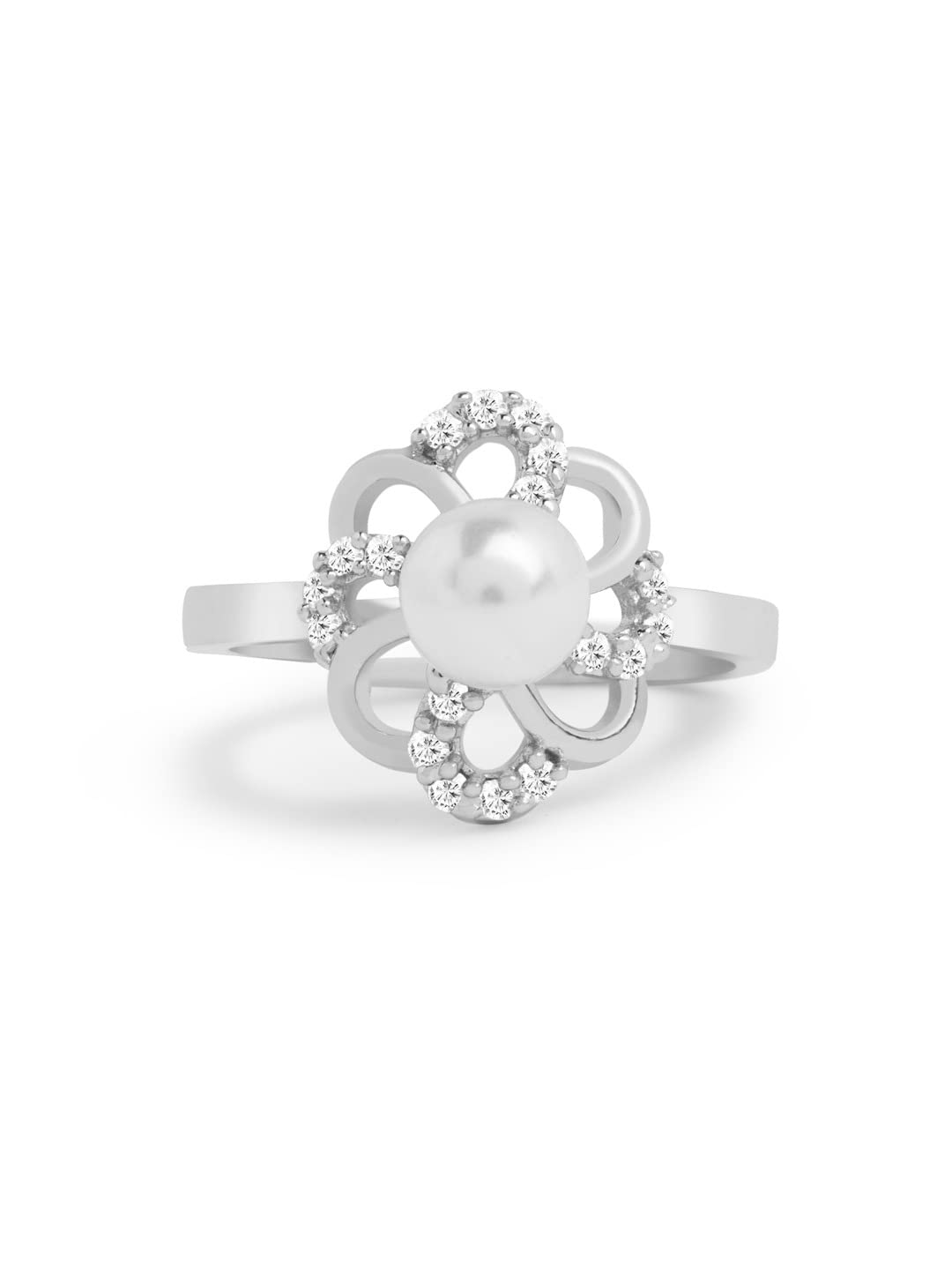 Ami Silver Tone Cubic Zirconia & Pearl Contemporary Brass Ring For Women-ZPFK19933