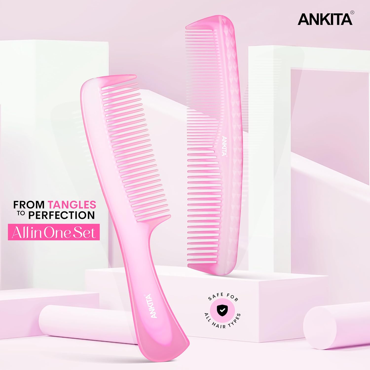 Discover the perfect hair grooming solution with this versatile 2-in-1 hair comb set. Designed for both men and women, these combs help you achieve your desired hairstyle with ease and precision. The set includes two different combs to cater to various styling needs, from detangling to precise styling and grooming. The combs feature well-crafted teeth that glide smoothly through your hair, helping to prevent snags and breakage while maintaining your hair’s natural shine. Whether you’re looking to style your hair for a special occasion or maintain your daily grooming routine, this practical comb set is an essential addition to your personal care collection. The compact size makes these combs convenient for travel or everyday use. Keep your hair well-maintained and styled with this handy grooming set that combines functionality with durability.