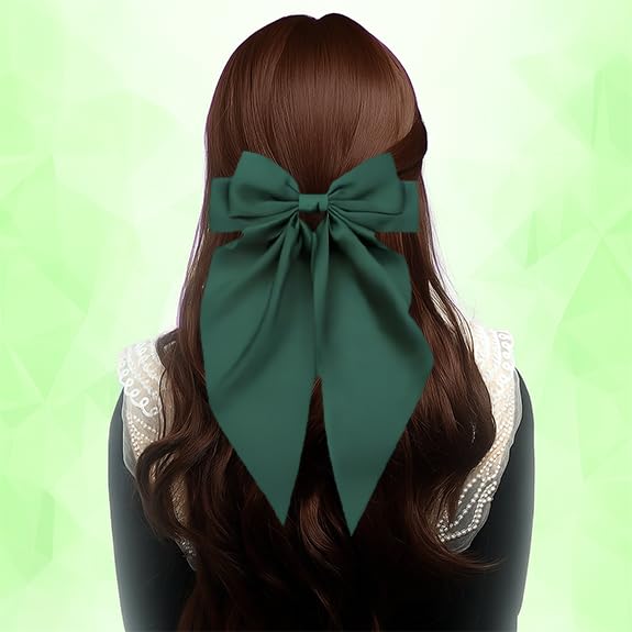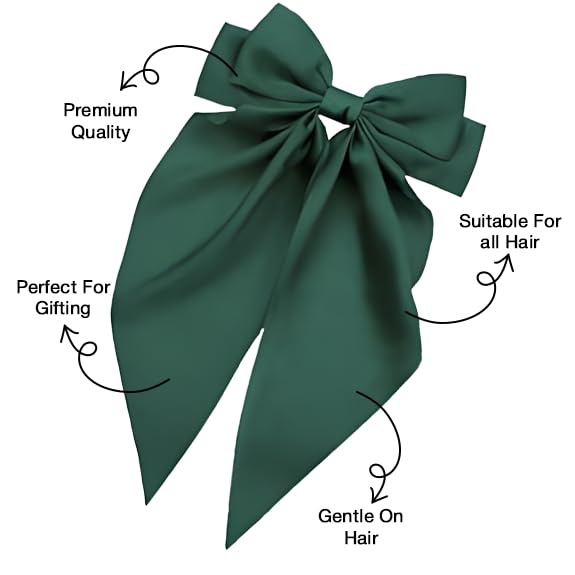 ANNA CREATIONS 1 Pc Korean Fashion Large Satin Bow Hair Clip Ribbon Hair Barrette for Women & Girls Stylish Hair Accessories for Party, Wedding, Gifting (Green)