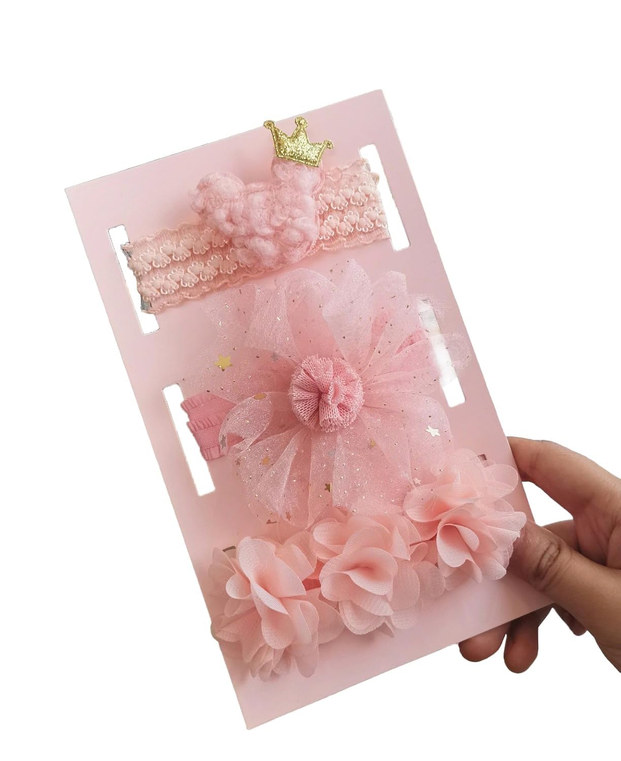 Give your baby girl an adorable, stylish look with the ANNA CREATIONS 3 Pcs Baby Headbands Set. Each headband is handmade using soft, stretchy, and baby-friendly materials that provide a gentle fit on delicate skin. Perfect for newborns, infants, and toddlers, these bands stretch smoothly without causing discomfort. The set includes three beautifully designed headbands — a charming floral piece, a cute character band, and a pretty tulle bow. All three come in soft pastel pink, making them ideal for photoshoots, festive occasions, birthdays, or simply adding sweetness to everyday outfits.