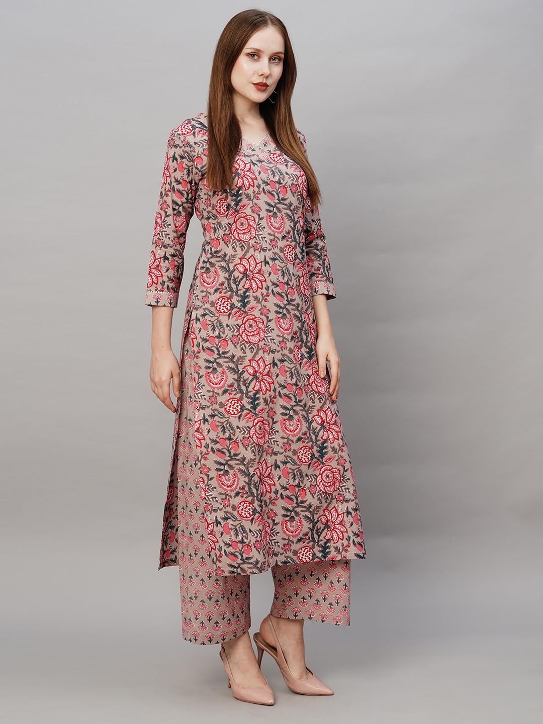 ANNI DESIGNER Women’s Cotton Blend Printed Straight Kurta with Pant (Rohila Peach_XXL_Peach_XX-Large)
