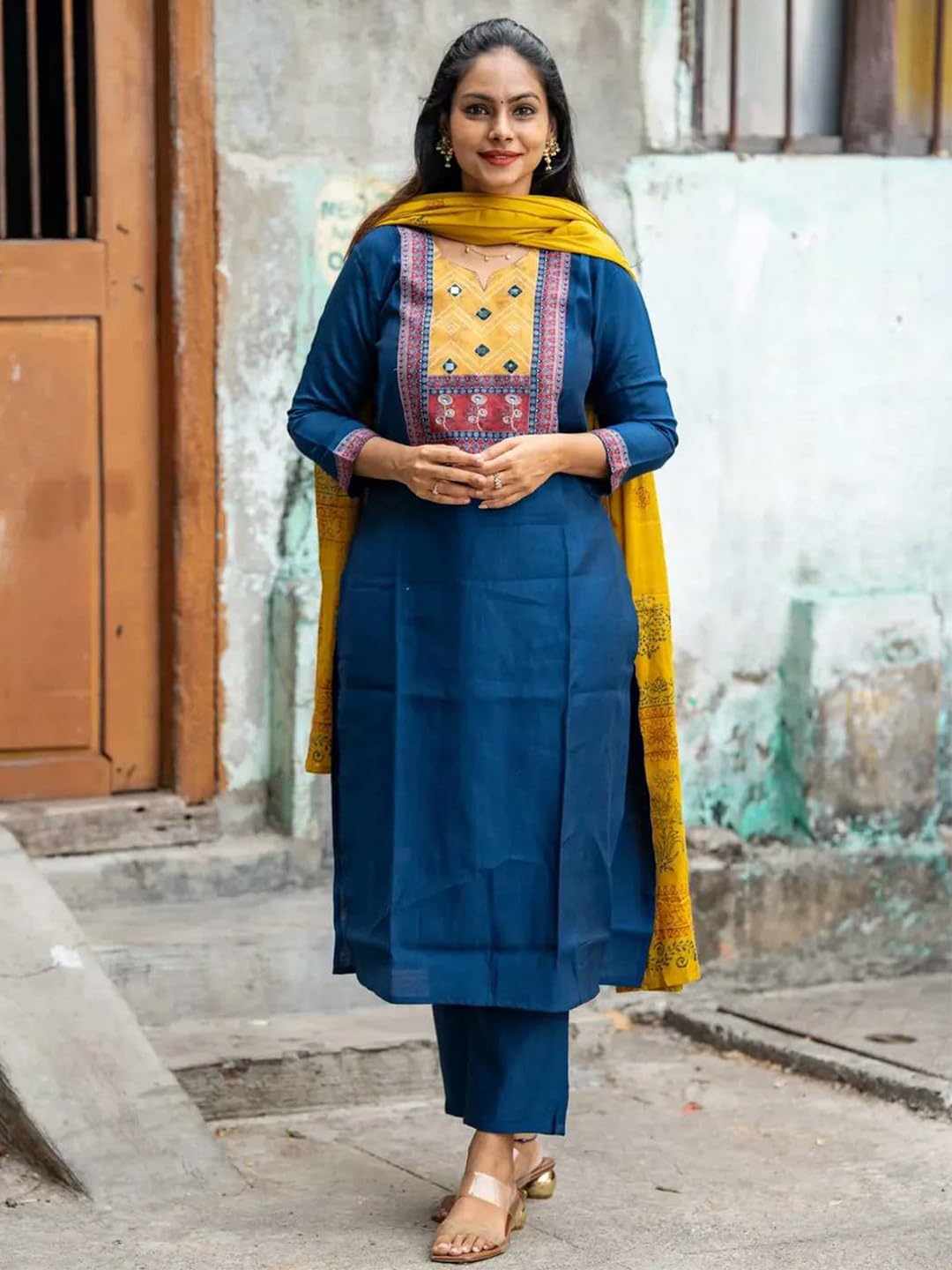 ANNI Designer Women’s Rayon Viscose Printed Embroidery Straight Kurta with Pant & Dupatta
