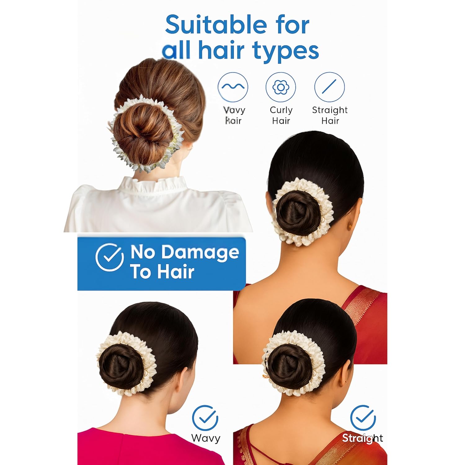 ANVIK Mogra Gajra 6pcs scented Artificial Flower Hair Accessories Scrunchies for Bun Bracelet Juda & Ponytail Wedding Jewellery Reusable for Women 6Pcs (White)