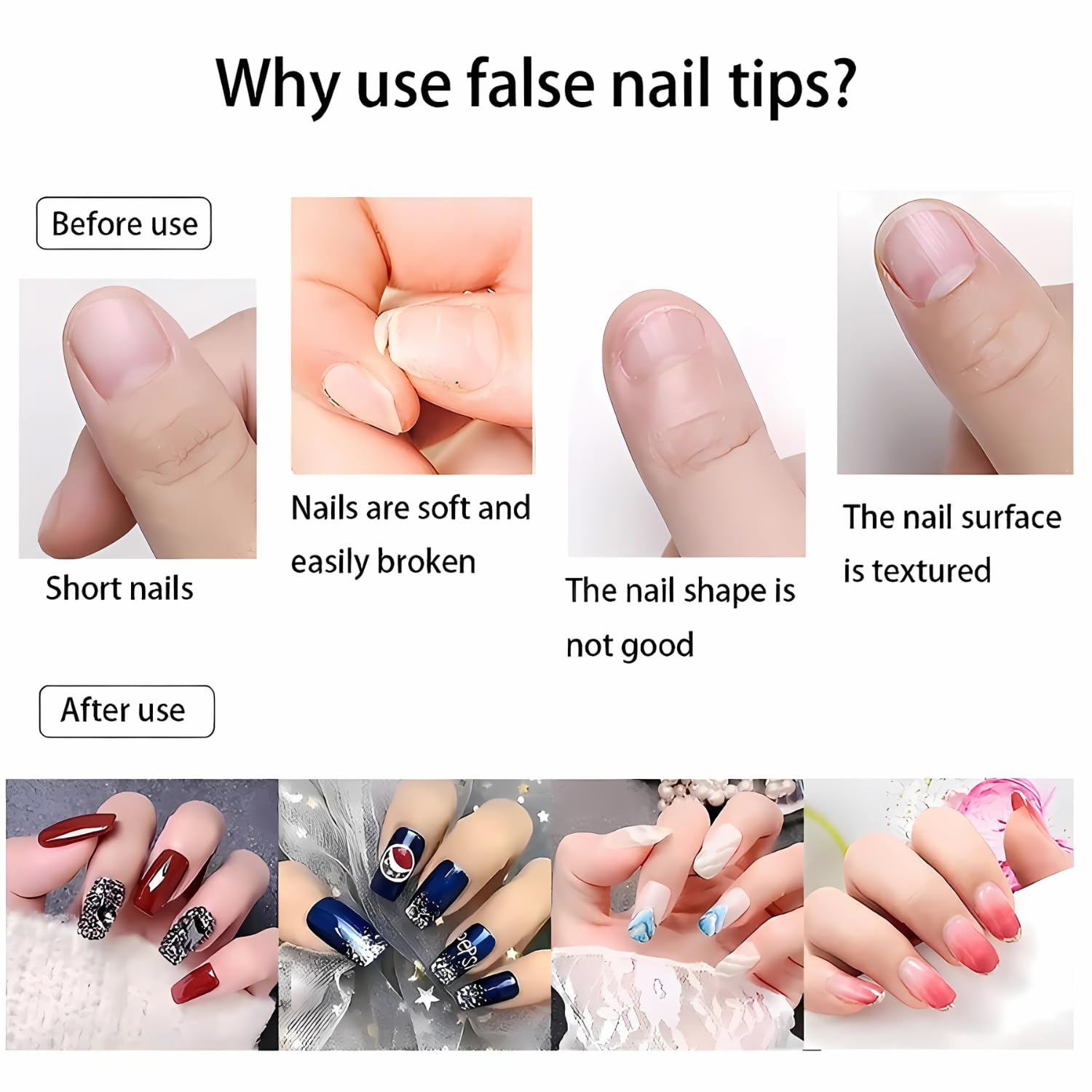 ๐ŸŽจ DIY Nail Art Ready โ€“ These smooth-surfaced nails are easy to trim, file, paint, and customize. Whether itโ€™s glitter, rhinestones, or classic polish, they hold color well without streaking or chipping.