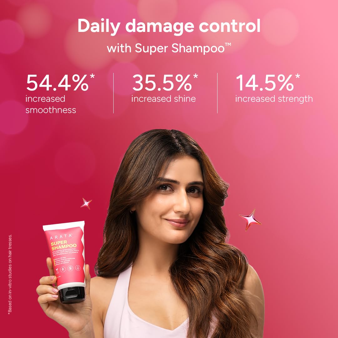 PREVENTS HAIR DAMAGE: The Arata Super Conditioner is infused with science-backed actives and superfoods like Keratin and Rice Water that penetrate deep into the cuticle to fill in damaged spots, making your hair strong and resilient. Regular use of the conditioner will ensure your hair stays resistant to external damage, breakage, and split ends.