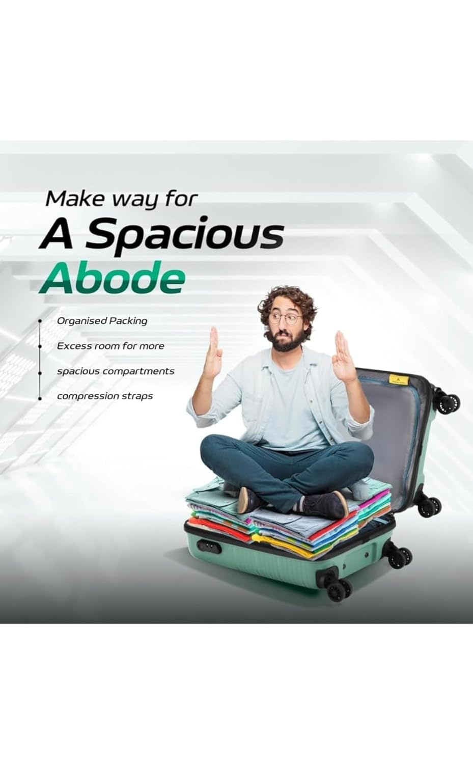 Aristocrat Slay Trolley Bag, 4 Wheels, 5 Year International Warranty, Green, Medium.