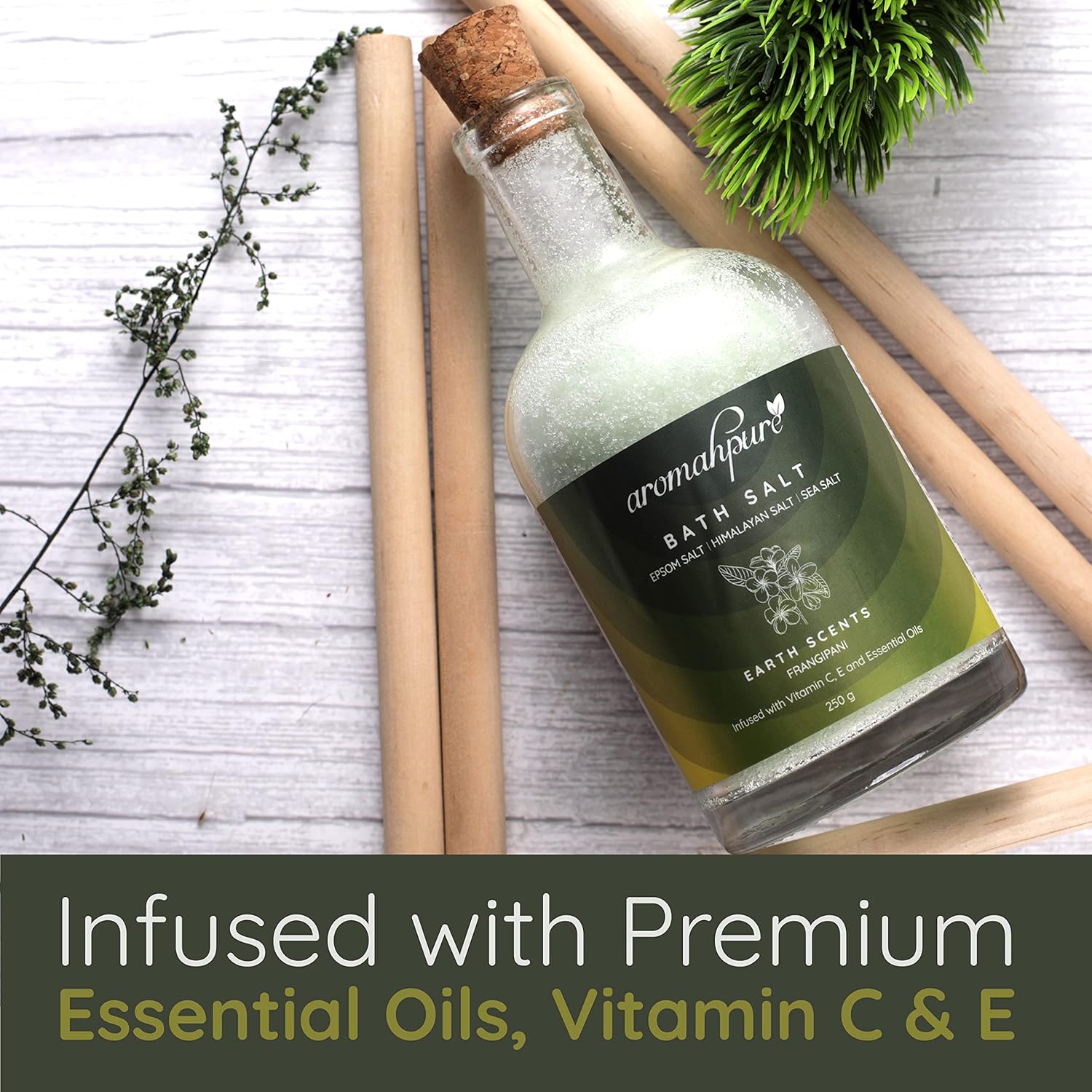 Earth scents: Earth Scent Bath Salt is extracted from Frangipani Flower which is well-known for its hydrating properties as it helps to heal chapped, dry, and cracked skin and keeps it supple. Frangipani oil possesses aphrodisiac, astringent, and purifying effects, as well as the ability to soothe nerves and muscles. The enticing aroma of frangipani is a popular ingredient in perfumes and cosmetic products.