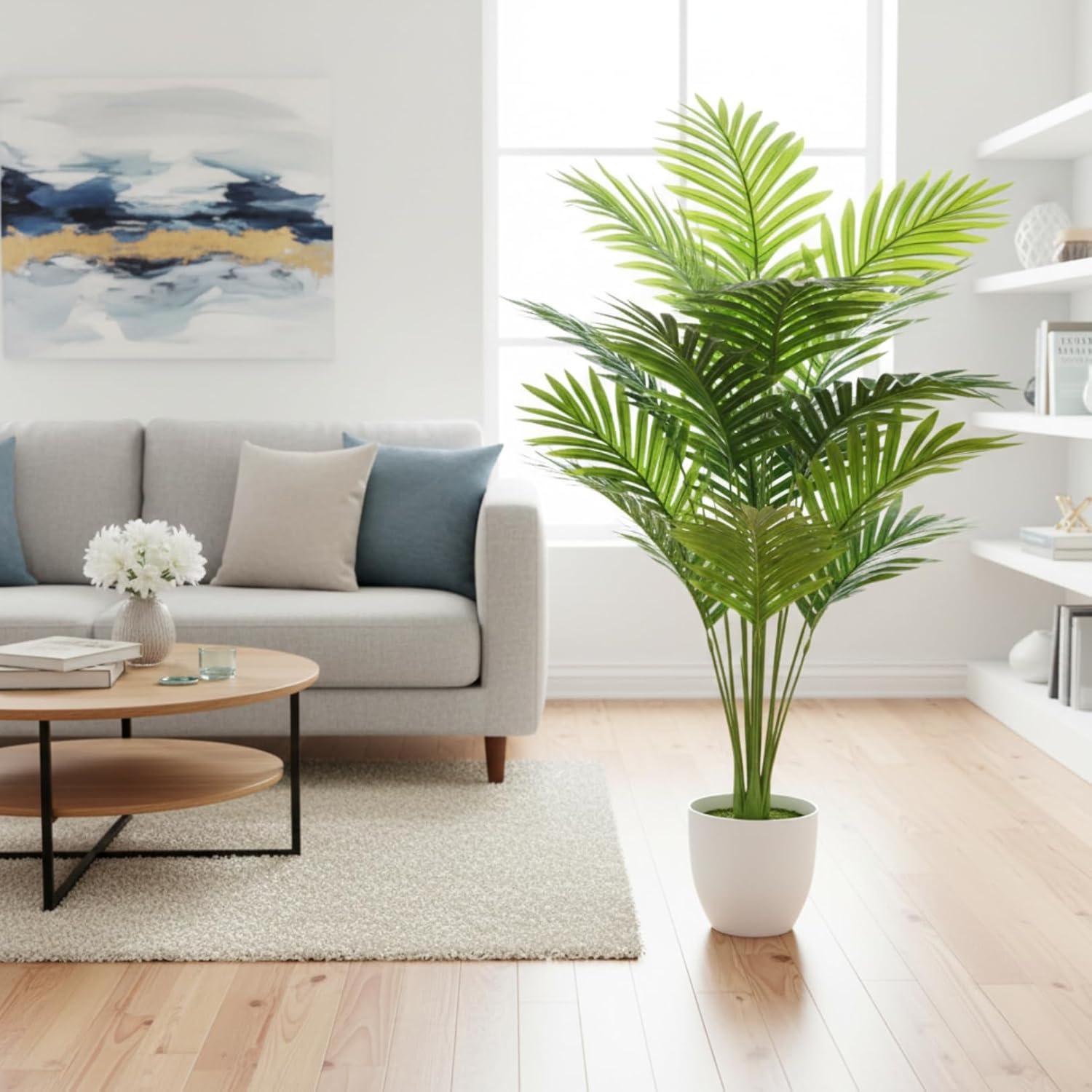 Elevate your interiors instantly with this *75 cm Artificial Areca Palm Plant, designed with lush green fronds and a modern white pot. A perfect blend of elegance and realism, it adds a calm, tropical vibe to any space—no watering, no sunlight, no maintenance*.