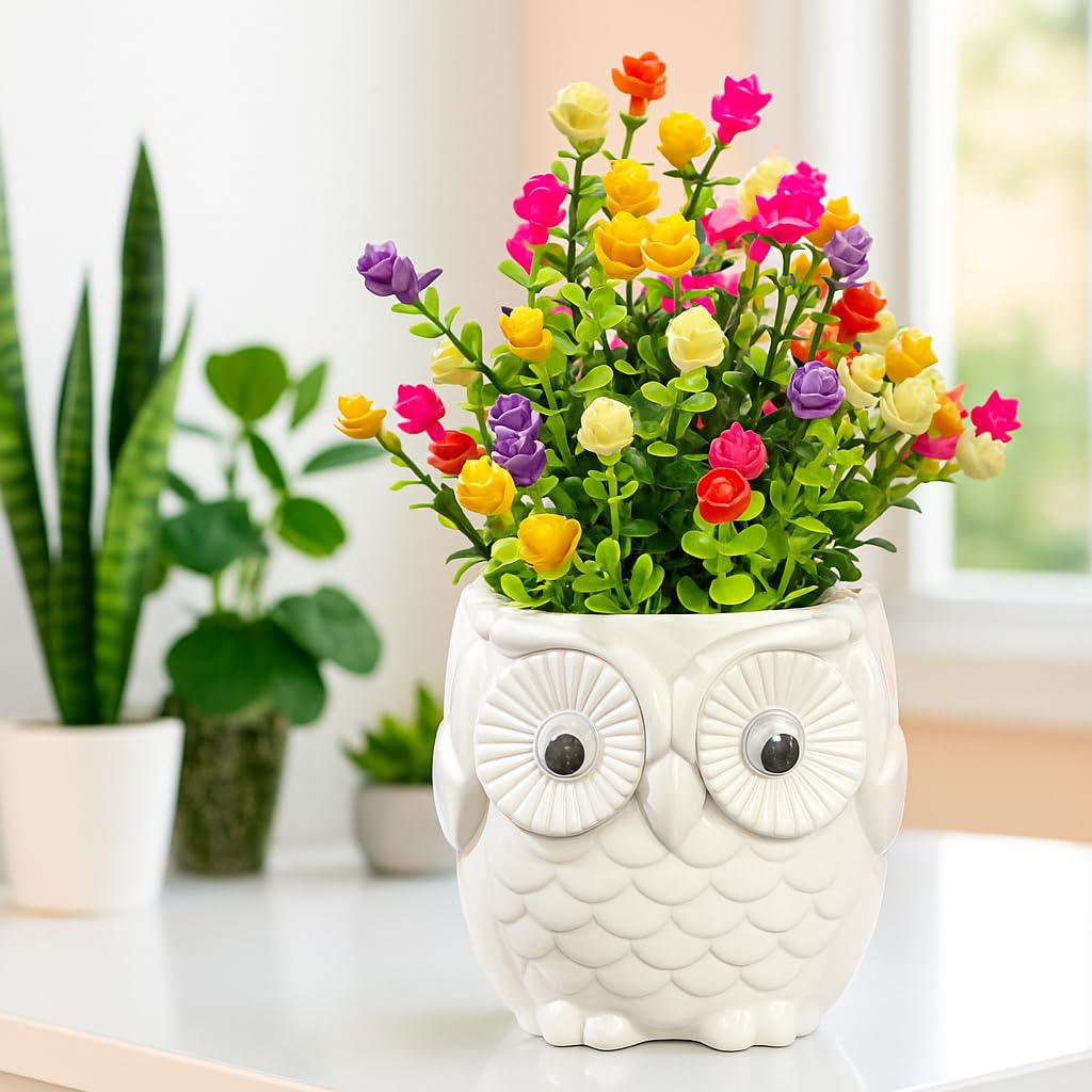 Multi-Variety Of Owl Pot With Artificial Plants – Elegant & Lifelike Décor