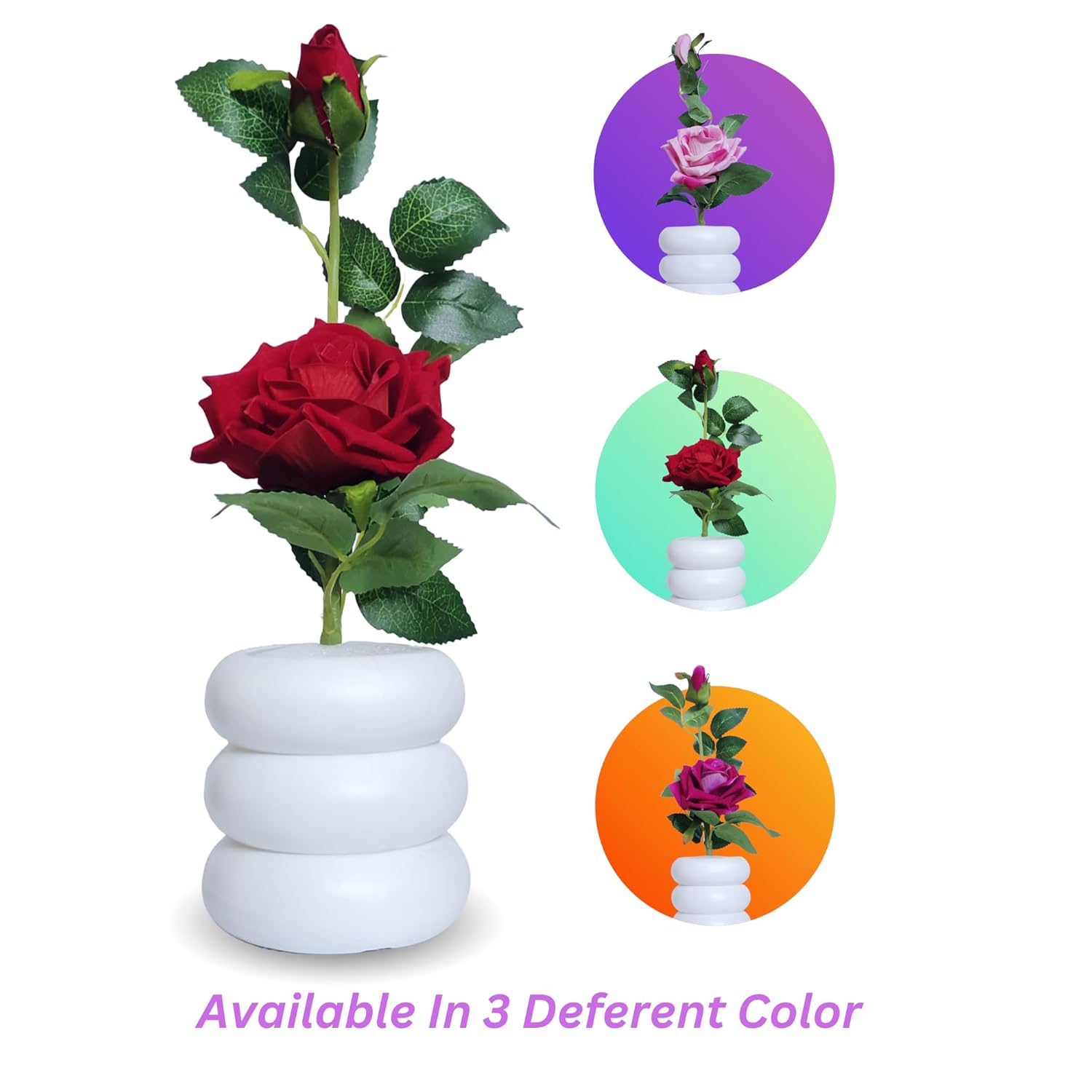 Artificial Rose Flower in a Stylish Flower Pot, Perfect for Home Decor | Living Room Elegance, and Decorative Items for Home a Attractive Home Decor Items (Red)