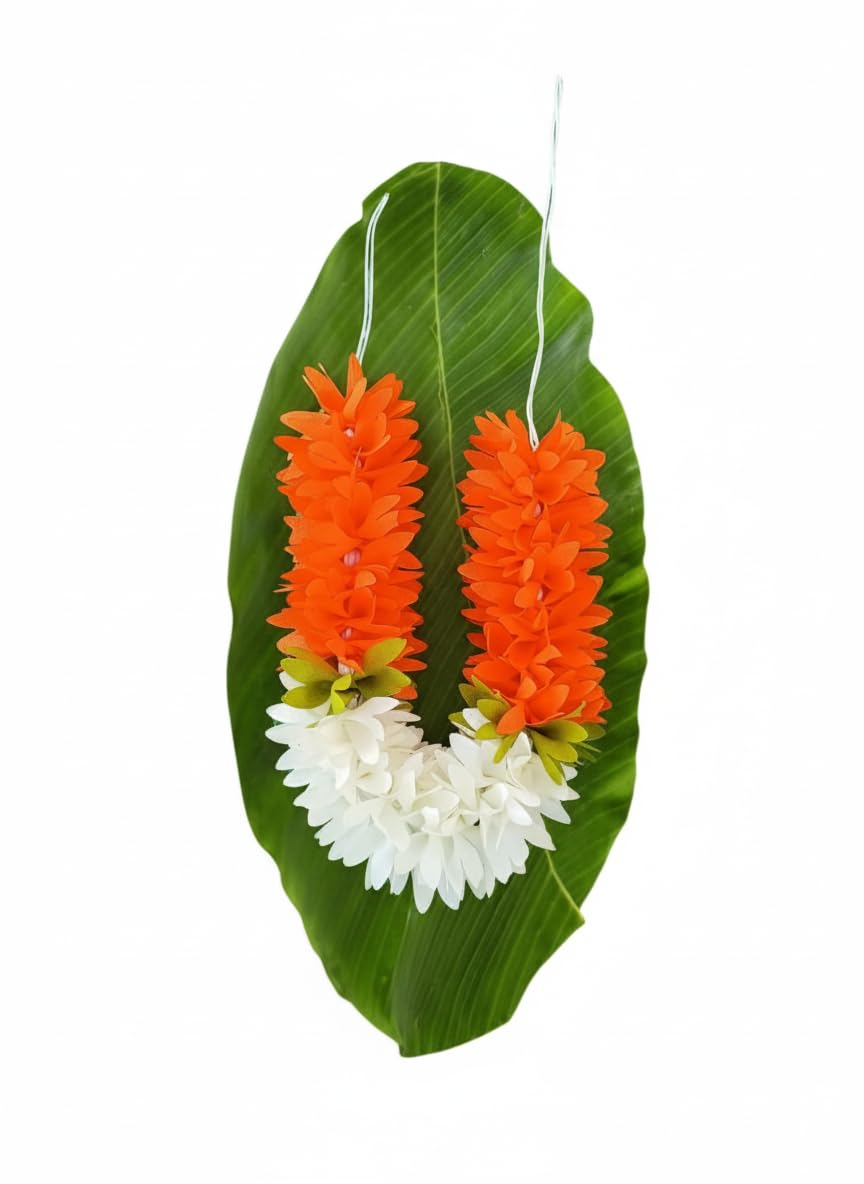 Elegant Traditional Look: Enhance your hairstyle with this artificial white & orange flower gajra for hair, perfect for weddings, poojas, and festive occasions.