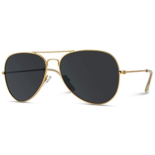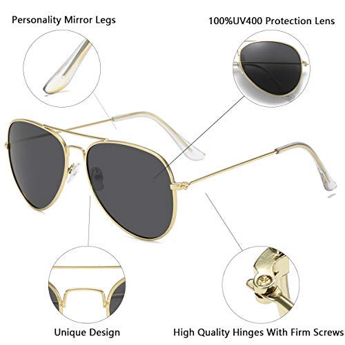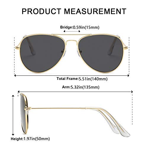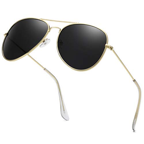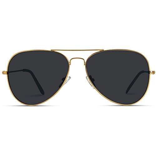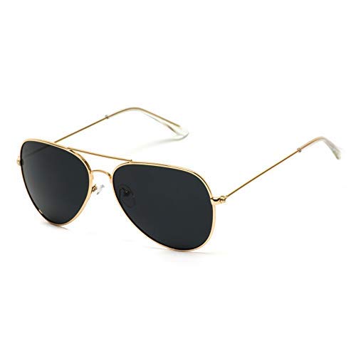 ARZONAI Classic Aviator Metal Unisex Sunglasses, Golden Frame, Black Lens (Medium) Pack of 1