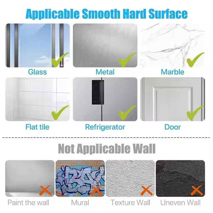 ✅ Multi-Surface Compatibility – Works on smooth surfaces like tile, glass, wood, metal, plastic, and more. Not recommended for painted or wallpapered walls.