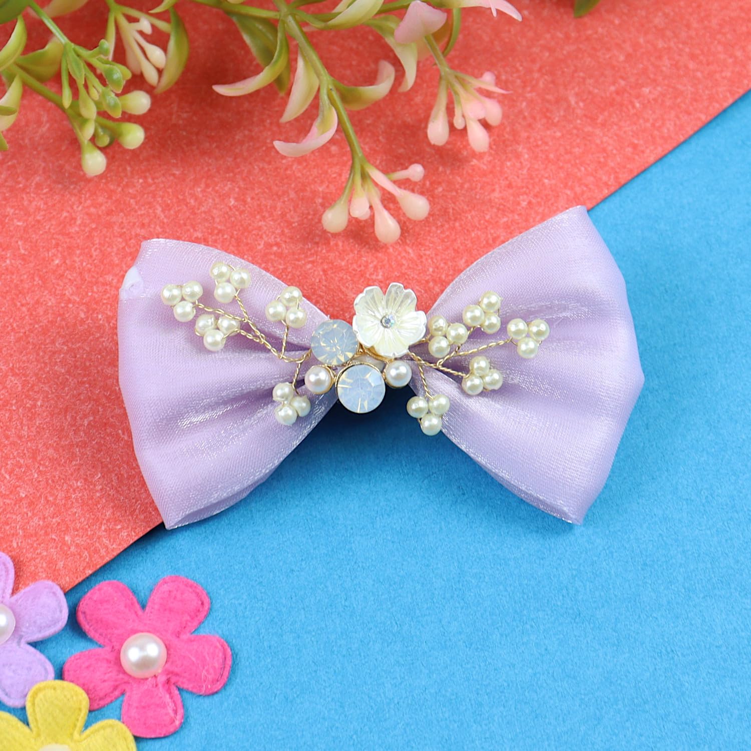 Asthetika Kids Floral Charm Bow Hair Clip – Elegant Blue Hair Accessory for Girls | Stylish Bow with Beads