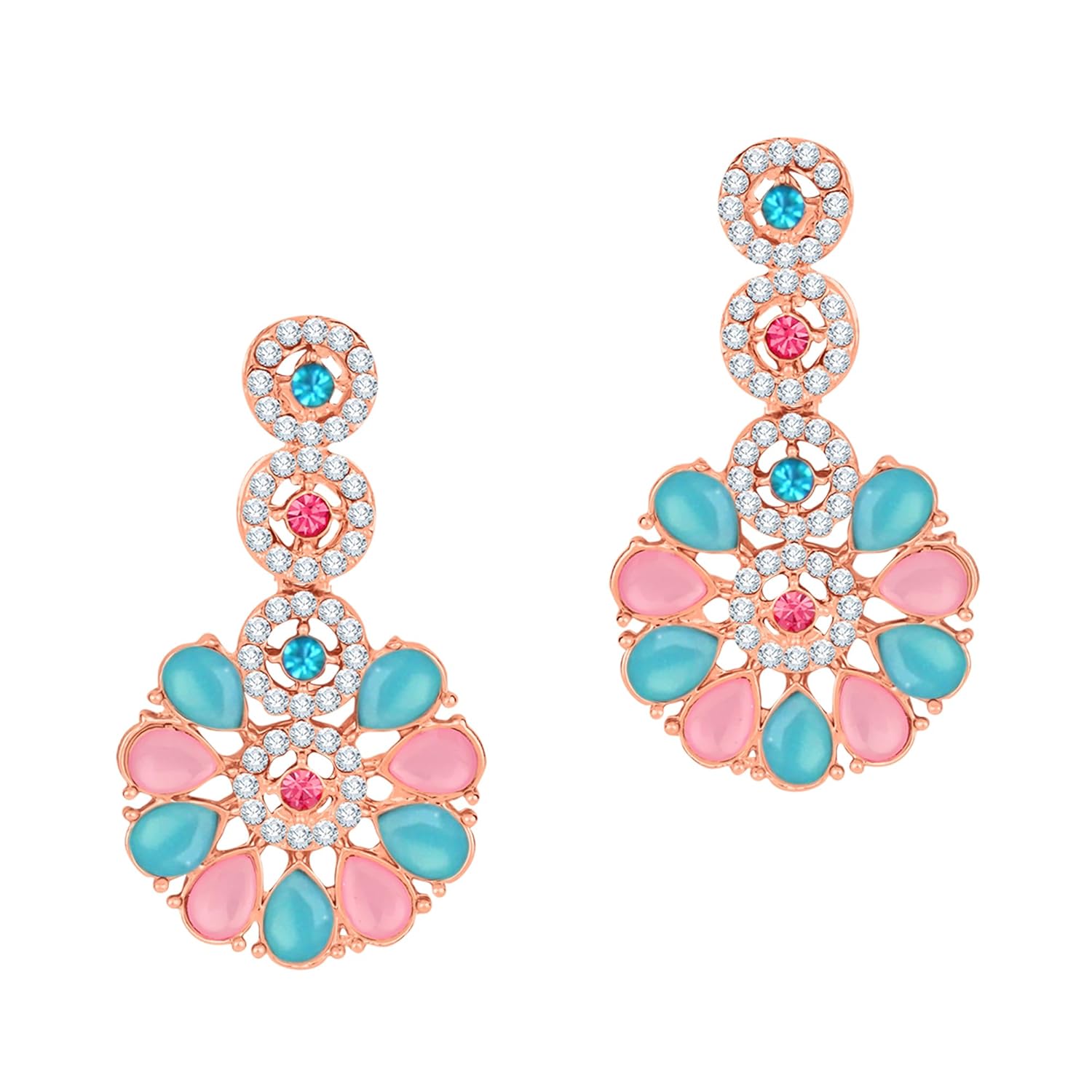 • Ratnavali Jewels Beautiful CZ/AD Studded Gold Plated Traditional Blue Green Red American Diamond Bangles Set for Women (RVA530)
