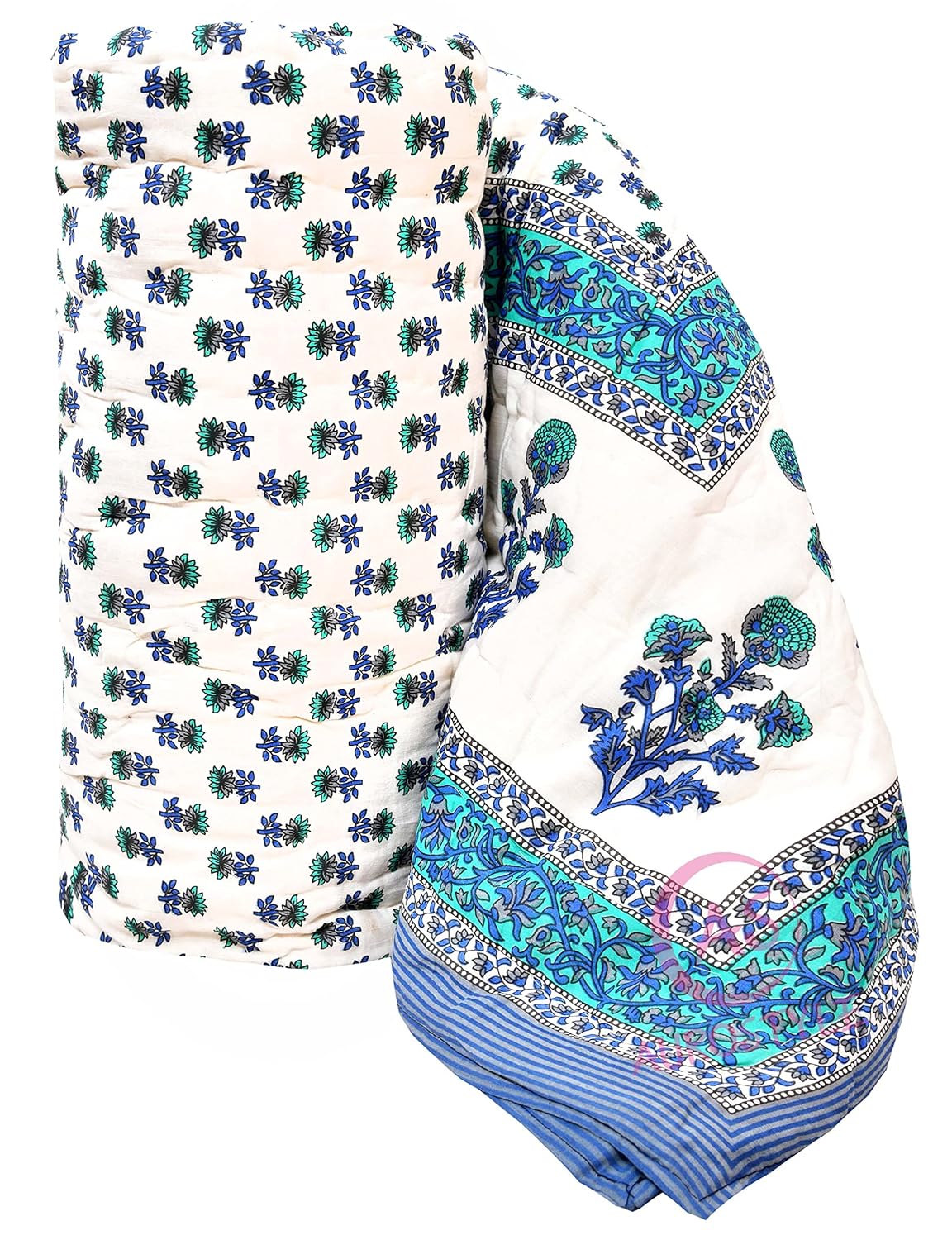 AUROSTYLE 400 TC Pure Cotton Traditional Jaipuri Design Printed Light Weight Single Bed Quilt/Razai/Rajai – [Single Bed- 85 X 55 Inches] (Design 10)| TC – 200,Multicolor