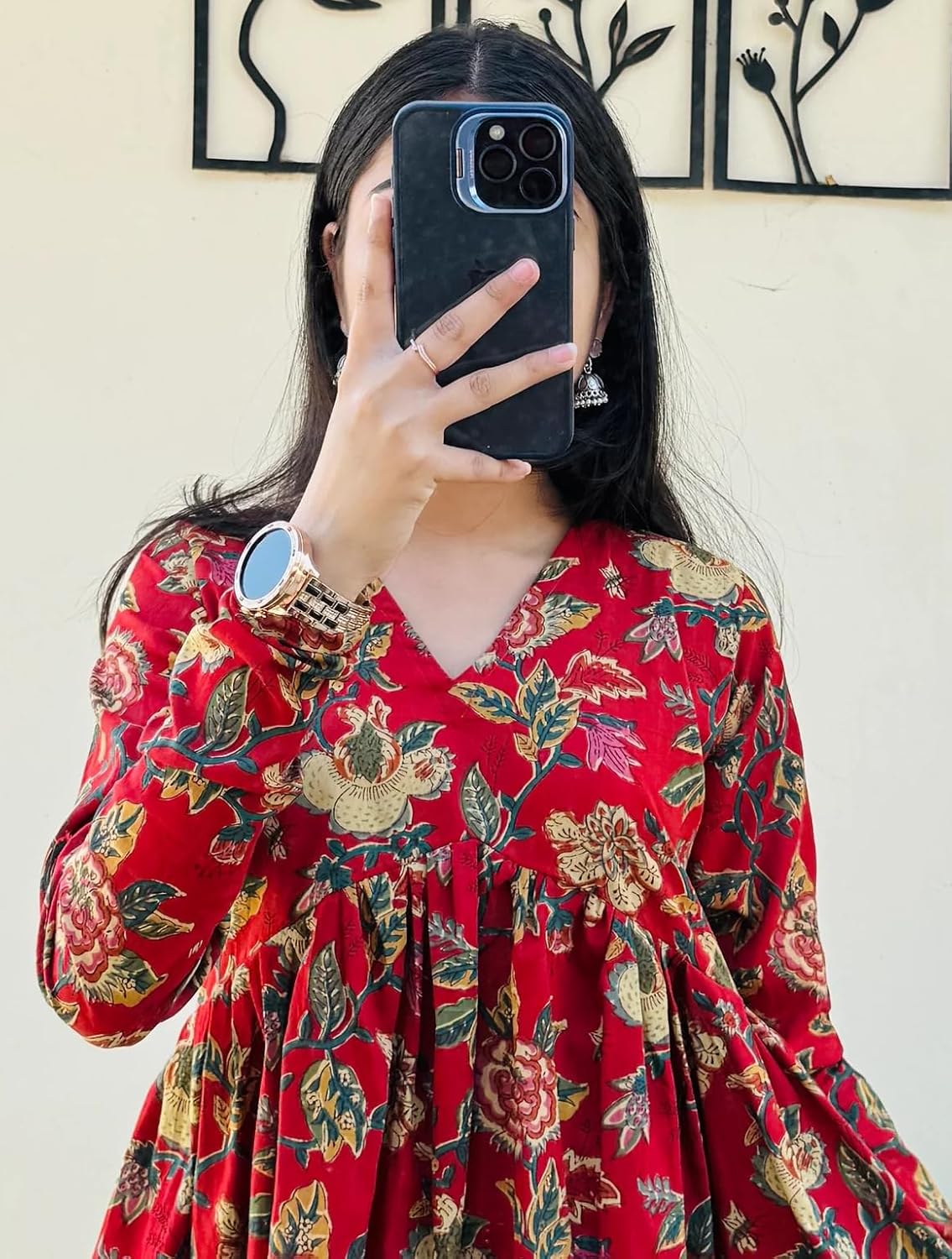 Avayayat Women Rayon Floral Short Anarkali Kurti Jaipuri Printed Front Designer Stylish Latest, Short Tunic for Women, Top