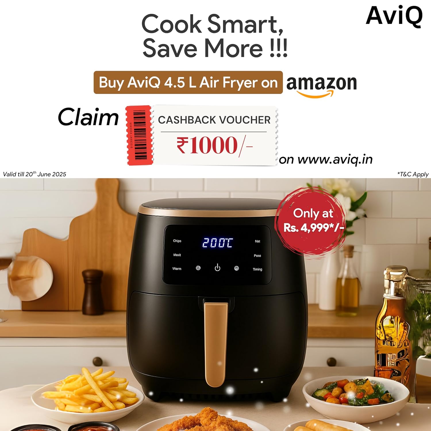 Savor guilt-free flavors with the AviQ Air Fryer AF04, offering up to 80% less fat in every bite.
