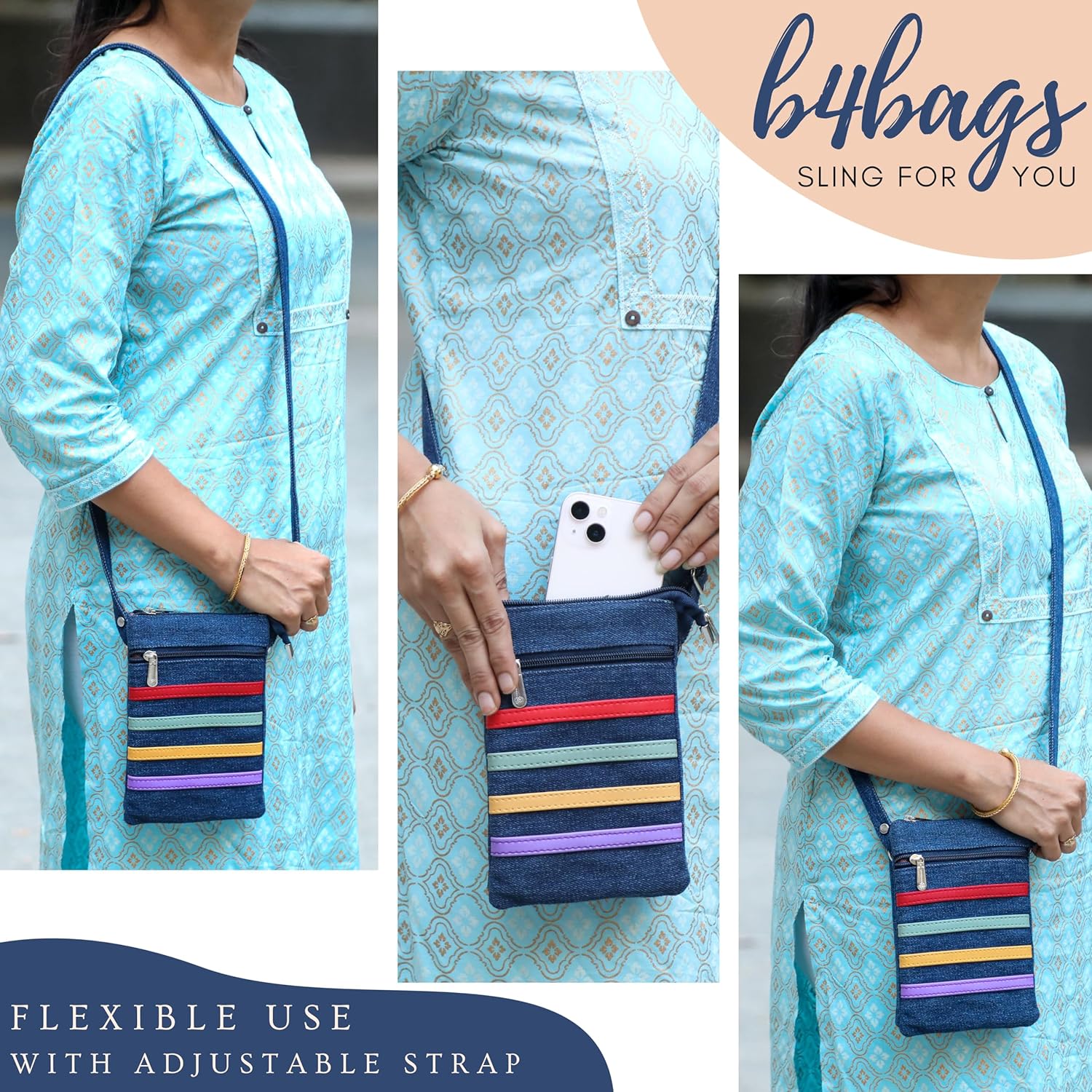 Customers find this sling bag to be of good quality with sturdy zippers and appreciate its size, being able to fit a 6-inch screen phone. The bag features multiple compartments and is easy to carry, with one customer noting it’s perfect for walking or nearby shopping. They like its appearance, soft fabric, and consider it worth the price.
