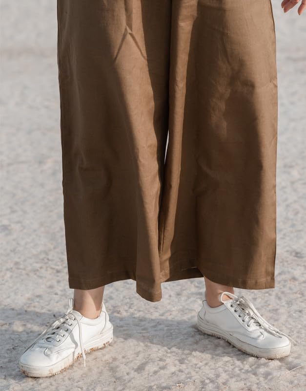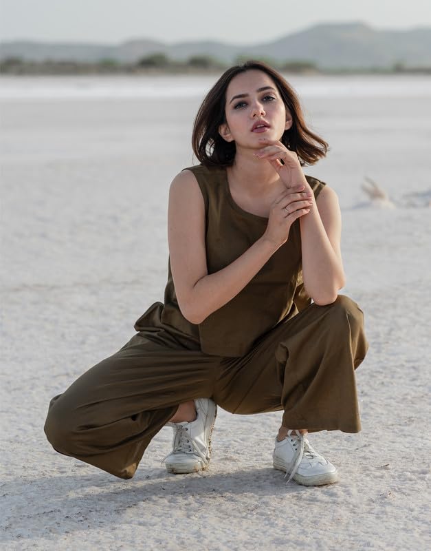 • Babli Women’s Sage Brown Cotton Co-ord Set | Sleeveless Crop Top & Plazzo