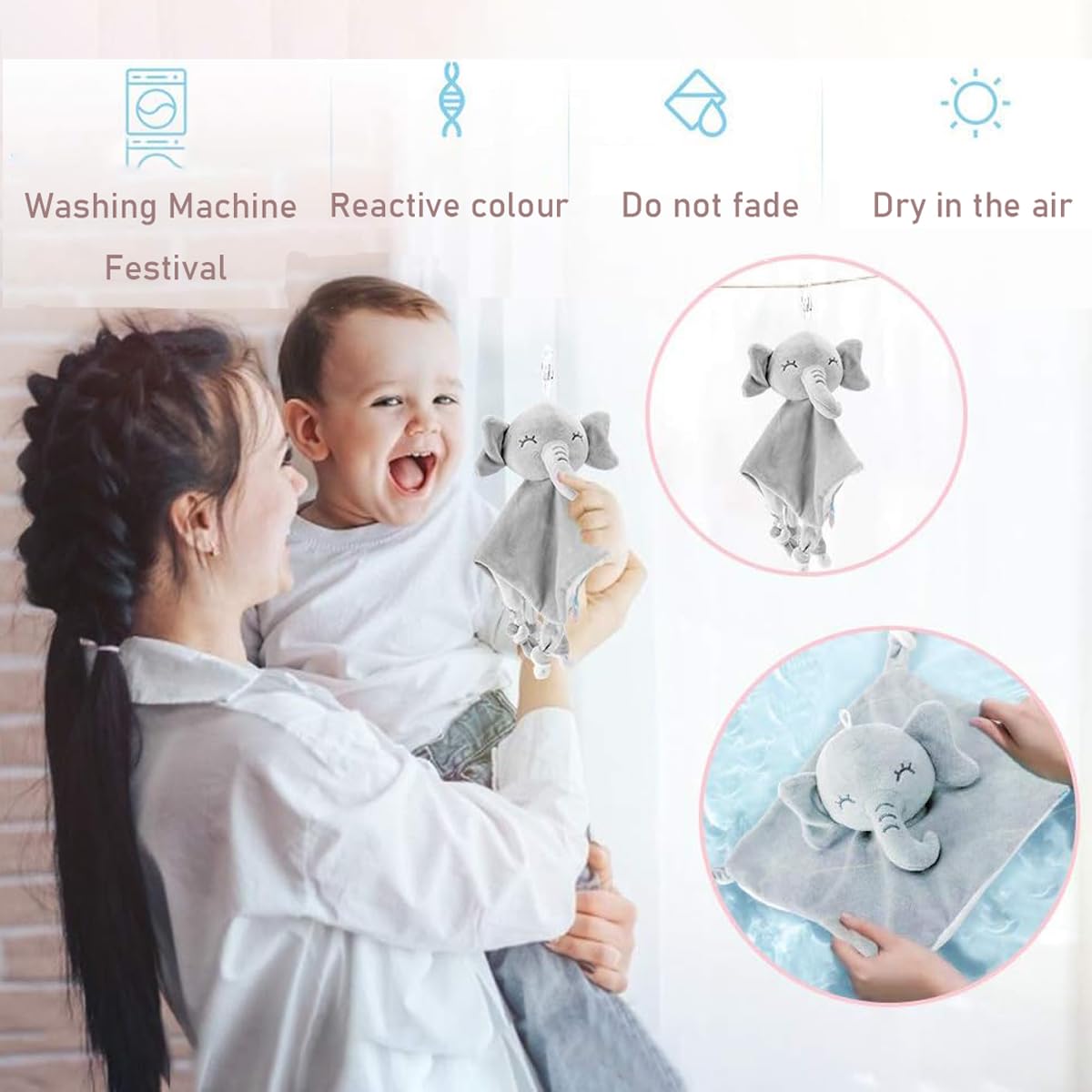 Designed for Tiny Explorers: Measuring 28 x 28cm, this elephant baby blanket, soft blanket comforter is perfectly sized for use in strollers, car seats, or cribs. Its small and lightweight design makes it easy for little hands to grasp and carry, providing a sense of security wherever they go