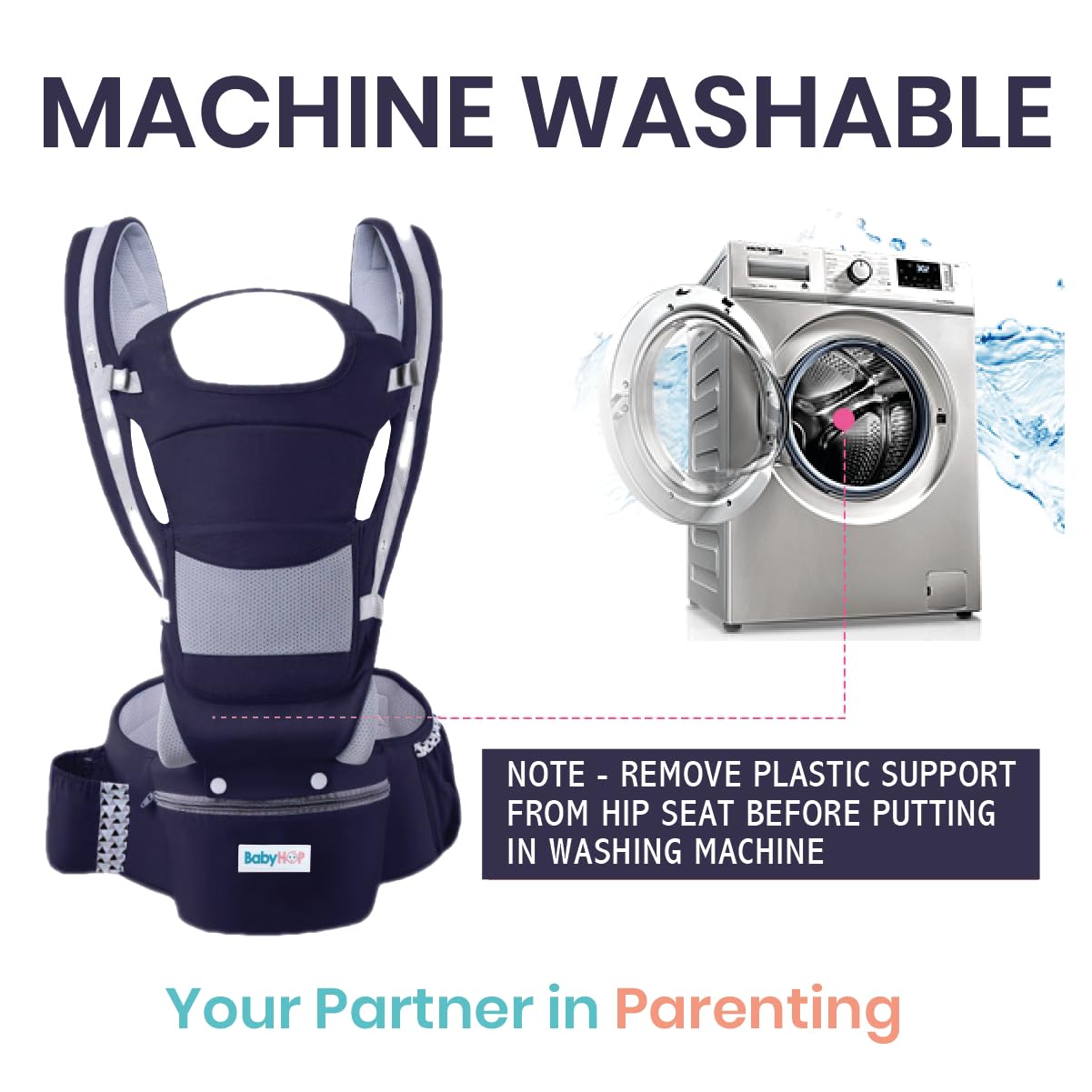 STRONG DETACHABLE SEAT: The hip seat can be detached from the carrier and it is strong enough to keep your baby’s hip & legs in “M” position which is comfortable to the baby for longer duration