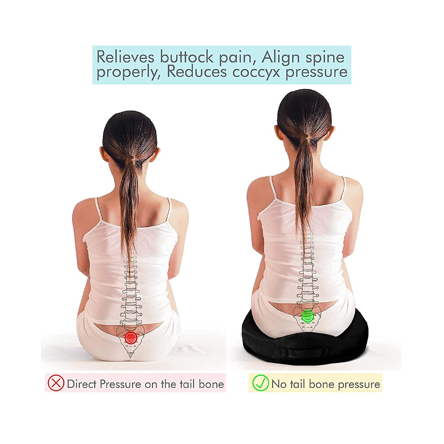 COCCYX RELIEF CUT OUT DESIGN: The Zero Pressure Tailbone Cutout designed especially for the coccyx area, minimizes direct contact between the sensitive tailbone area and the surface of the seat cushion. Thus the graduated edge positions the hips for better alignment, improved posture and enables easy pelvis rotation.