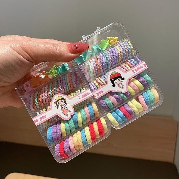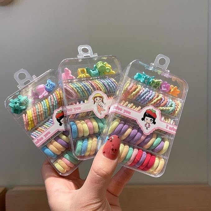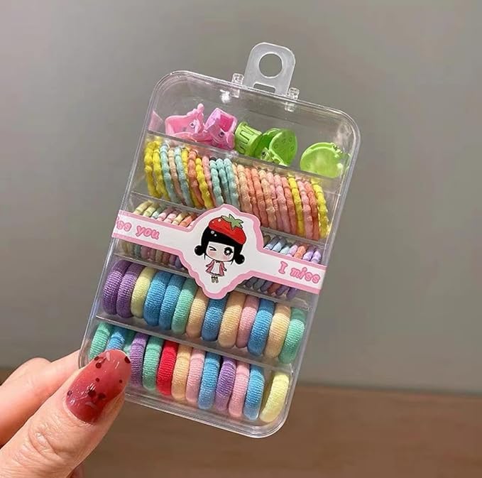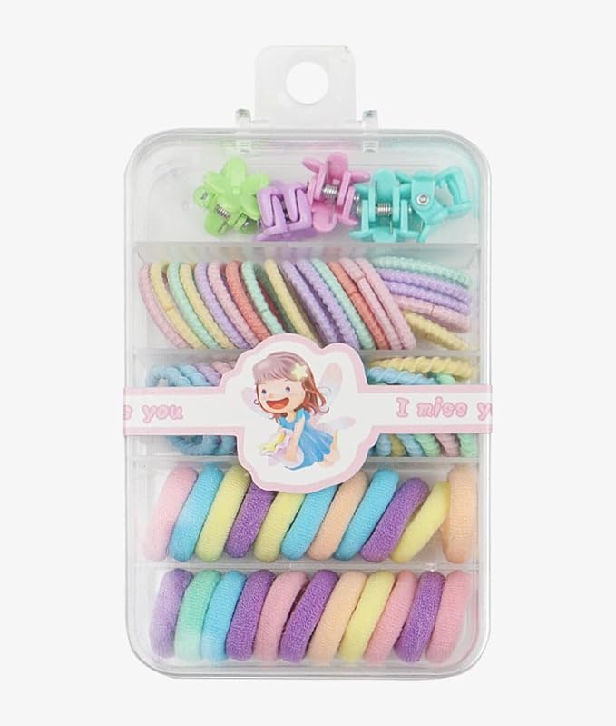Versatile Designs: The set features hair bands, small rubber hair elastics, and hair clips suitable for toddlers and young girls.