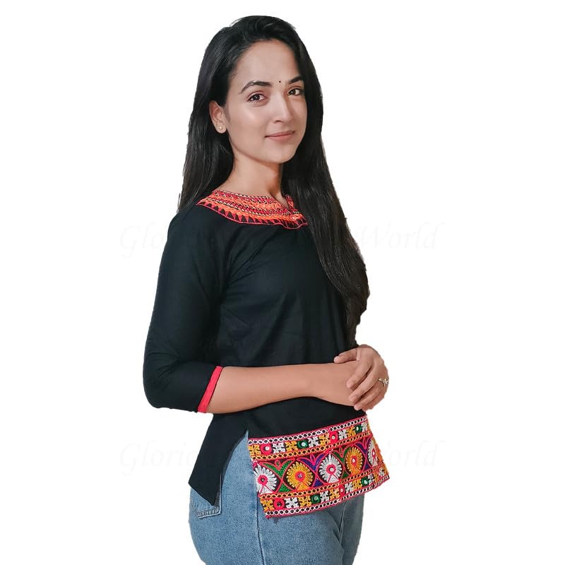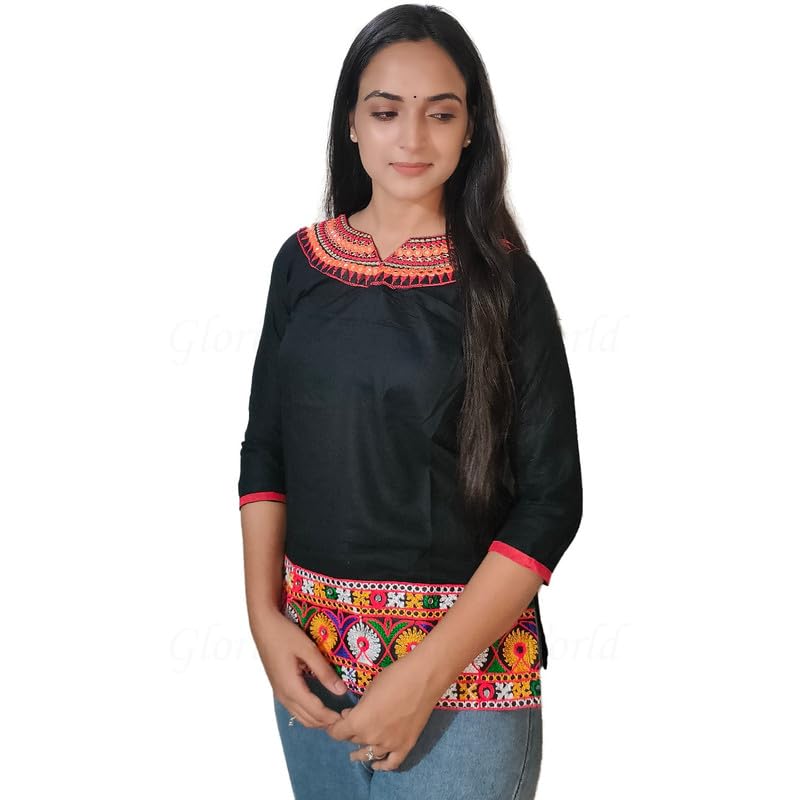 Banjara Style Hub Women’s Ethnic Short Kurti with Multicolor Thread Work