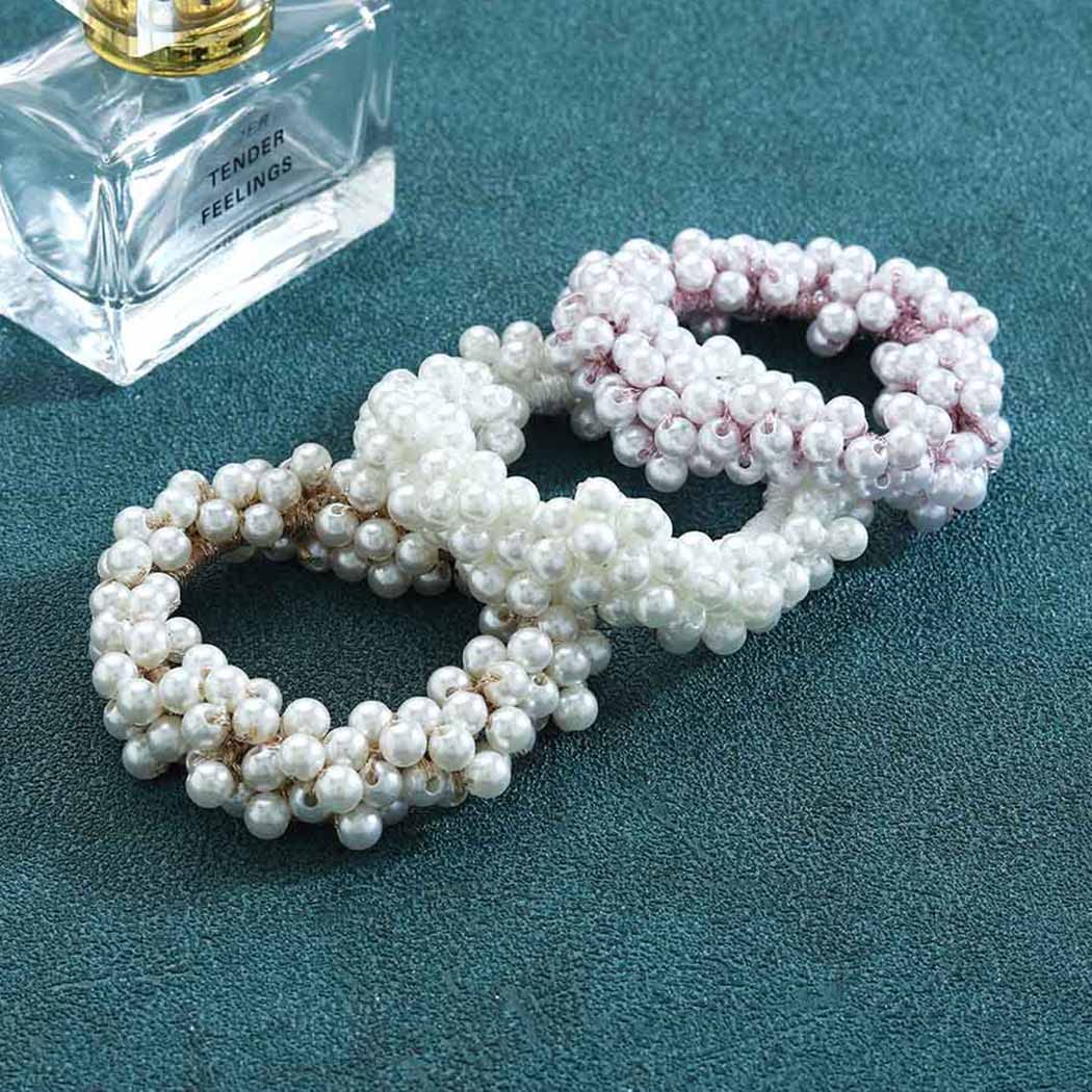 Bartosi Pearl Hair Ties White Weave Hair Scrunchies Stretch Hair Rope Accessories for Women and Girls (Pack of 3)