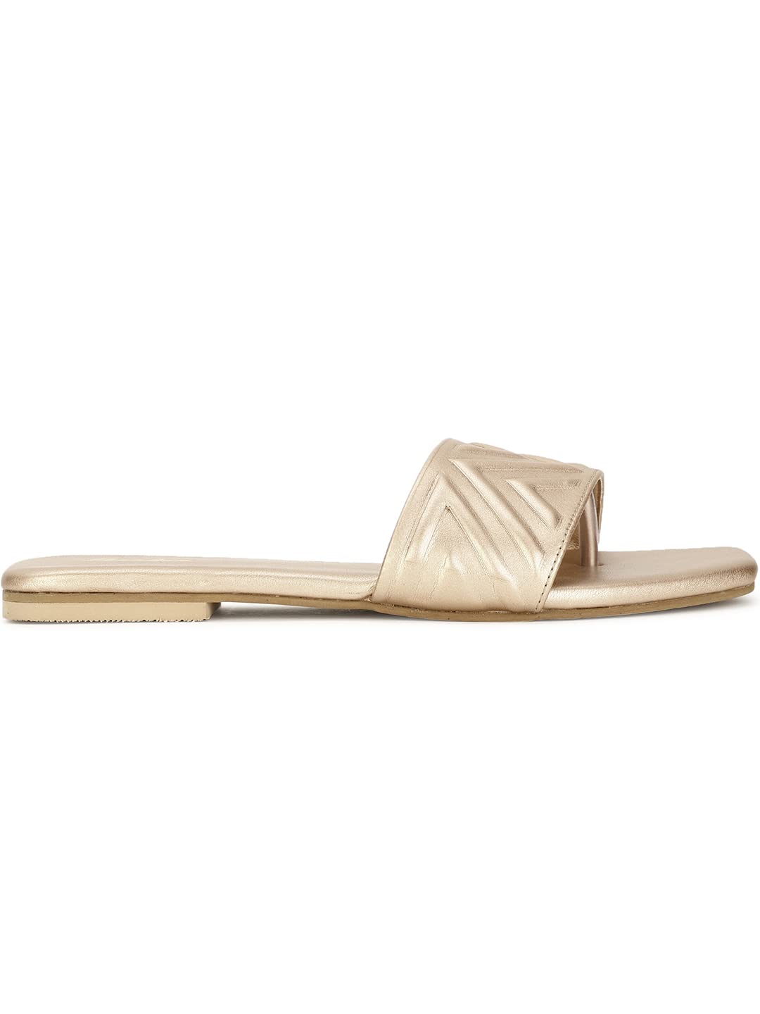 Look effortlessly stylish by wearing this pair of flat sandal featuring an eye-catching design and a refined appeal. A perfect choice to flaunt a classy style wherever you go.