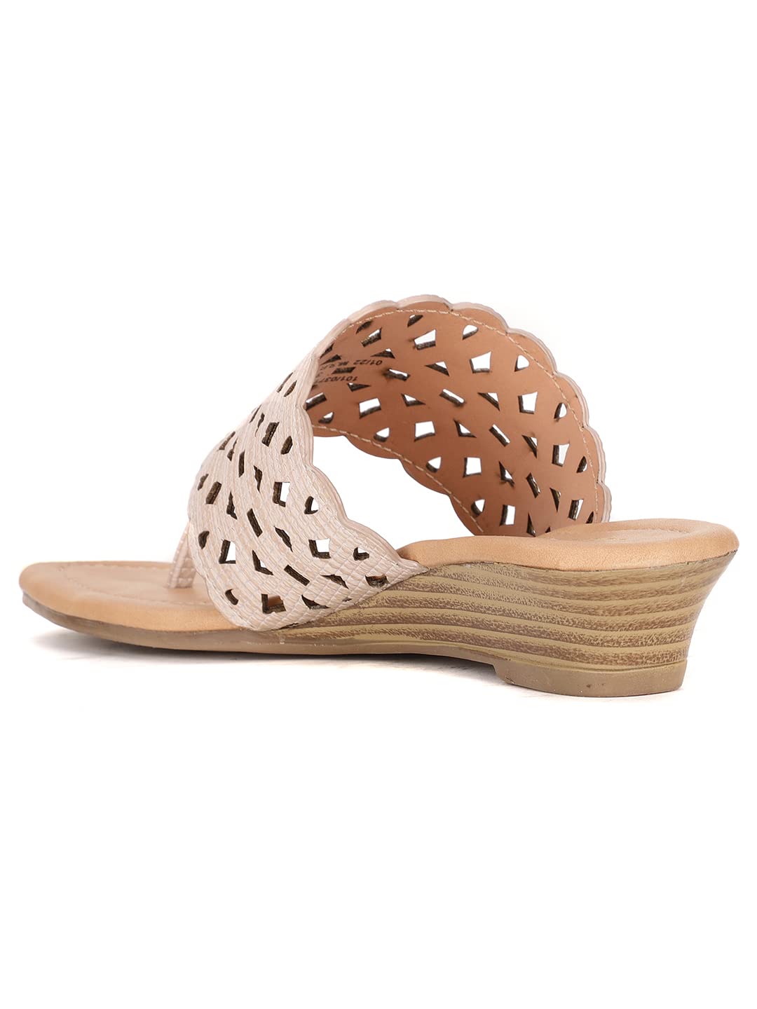 The sandals feature an intricate laser-cut pattern that not only adds a touch of elegance but also enhances breathability, keeping your feet cool and comfortable throughout the day.