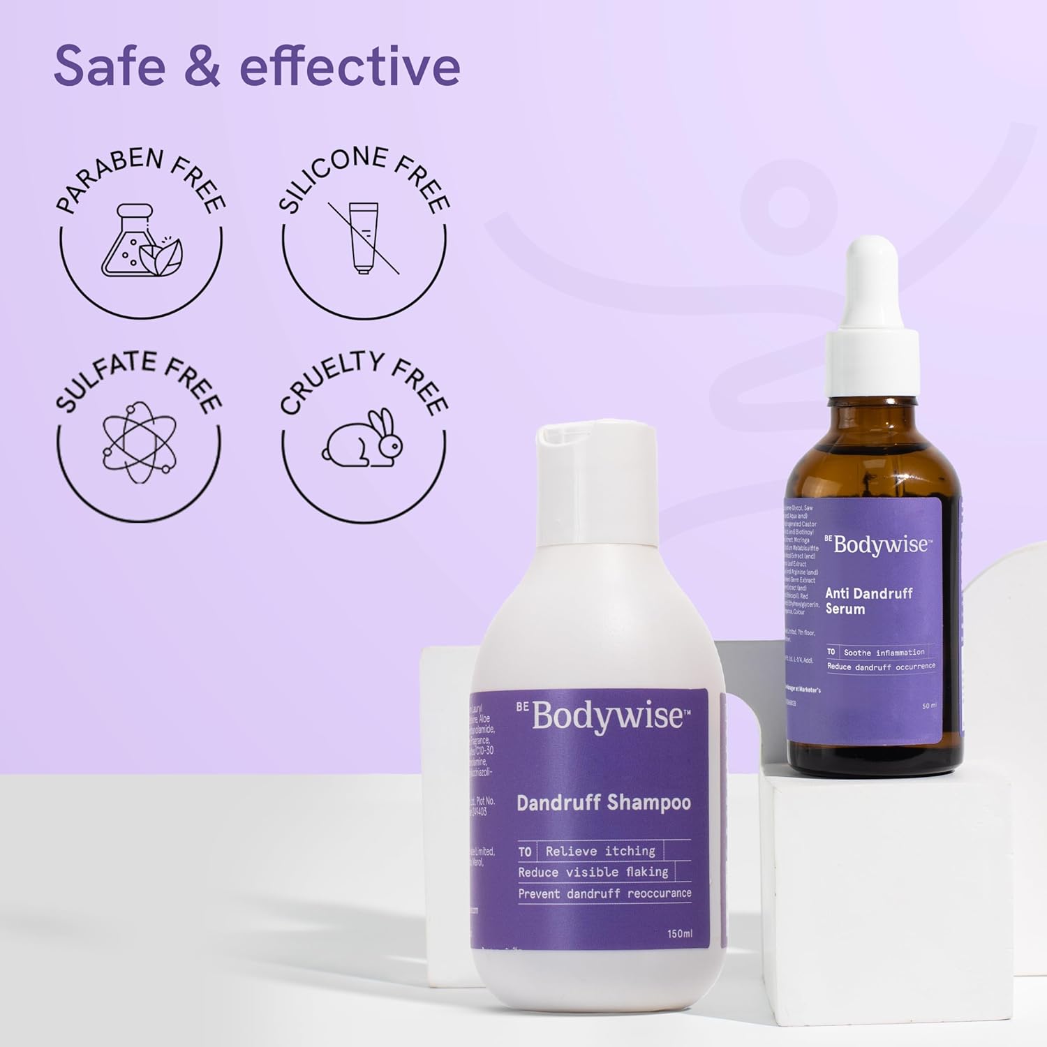 ✅ Introducing: Be Bodywise Anti-Dandruff Kit with Anti dandruff shampoo and dandruff serum. For dandruff-free & healthy scalp. With clinically proven ingredients that helps prevent dandruff recurrance, reduces scalp inflammation and itching.