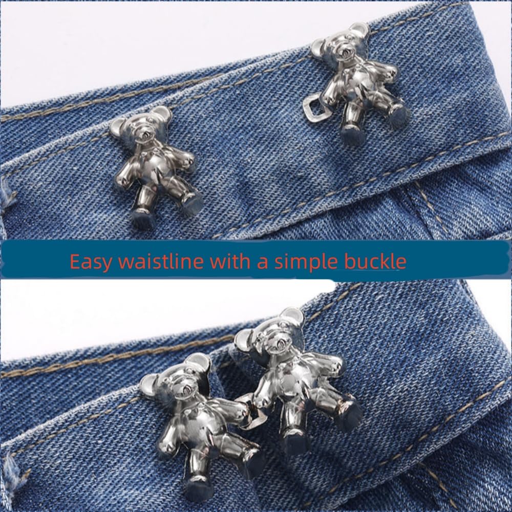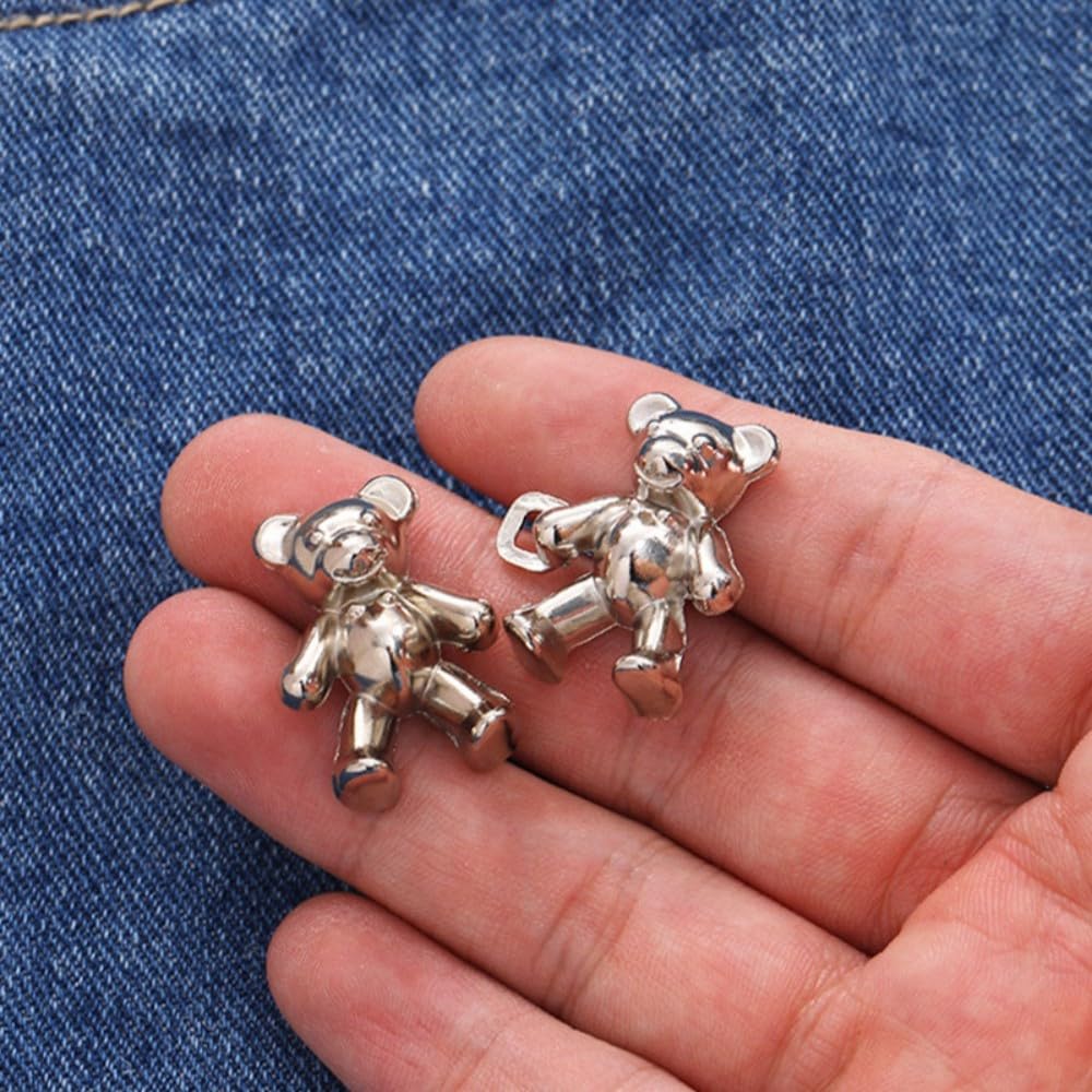 4 Pairs Cute Bear Jeans Button Pins No Sew Detachable Waist Body Fit Tighten Buckles Perfect Girl’s Gifts for Women Skirt Pant Jeans