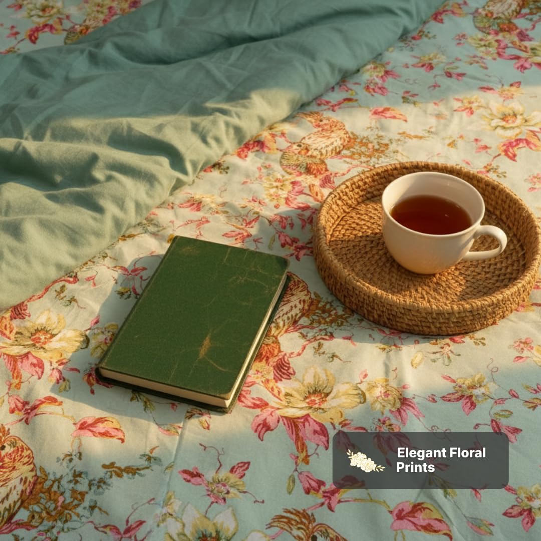 ELEGANT DESIGN: Beautiful floral pattern in muted tones featuring coral pink, turquoise blue, and brown hues that complement any room décor