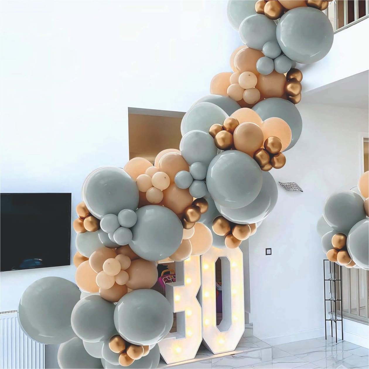 Transform your celebrations into magical moments with this stunning balloon decoration set from YOURS DECOR. This luxurious 67-piece collection features an elegant colour palette of dusty blue, beige, and metallic golden balloons in various sizes, creating a sophisticated and harmonious display. Perfect for birthdays, anniversaries, weddings, or any special occasion that deserves a touch of elegance. The carefully curated combination includes both large and small balloons that can be arranged to create stunning balloon arches, garlands, or ceiling decorations. The metallic golden accents add a sparkle of glamour, while the soft blue and beige tones provide a contemporary, refined aesthetic. These high-quality balloons are designed to maintain their shape and colour throughout your event, ensuring your decoration remains picture-perfect. Whether you’re planning an intimate gathering or a grand celebration, this versatile balloon set will help you create an enchanting atmosphere that your guests won’t forget.