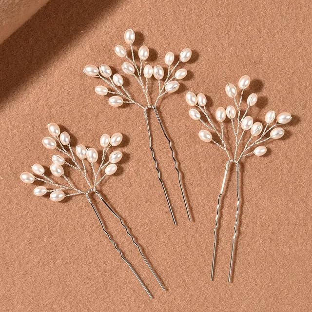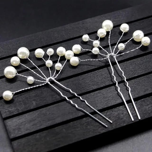 BEING BELLA 3 Pcs Diamond Pearl U Pins Hair Accessories for Women & Girls – Decoration Pearls Beads Hair Clip for Bride Hairstyle