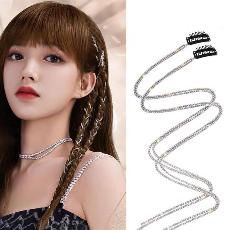 Belicia 2 Pcs Tassel Hair Clips Rhinestone Chain Clips Bride, bridesmaid hair braider Ponytail Holder Hair Accessories for Women Girls