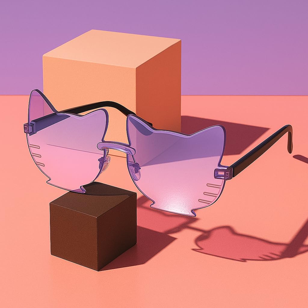 BellaStella Cute Cat Shape Sunglasses & Bow Hair Clip Set – Gradient Pink Purple Shades with Pearl Bows Hair Accessory for Baby Boys & Girls (Pack of 1)