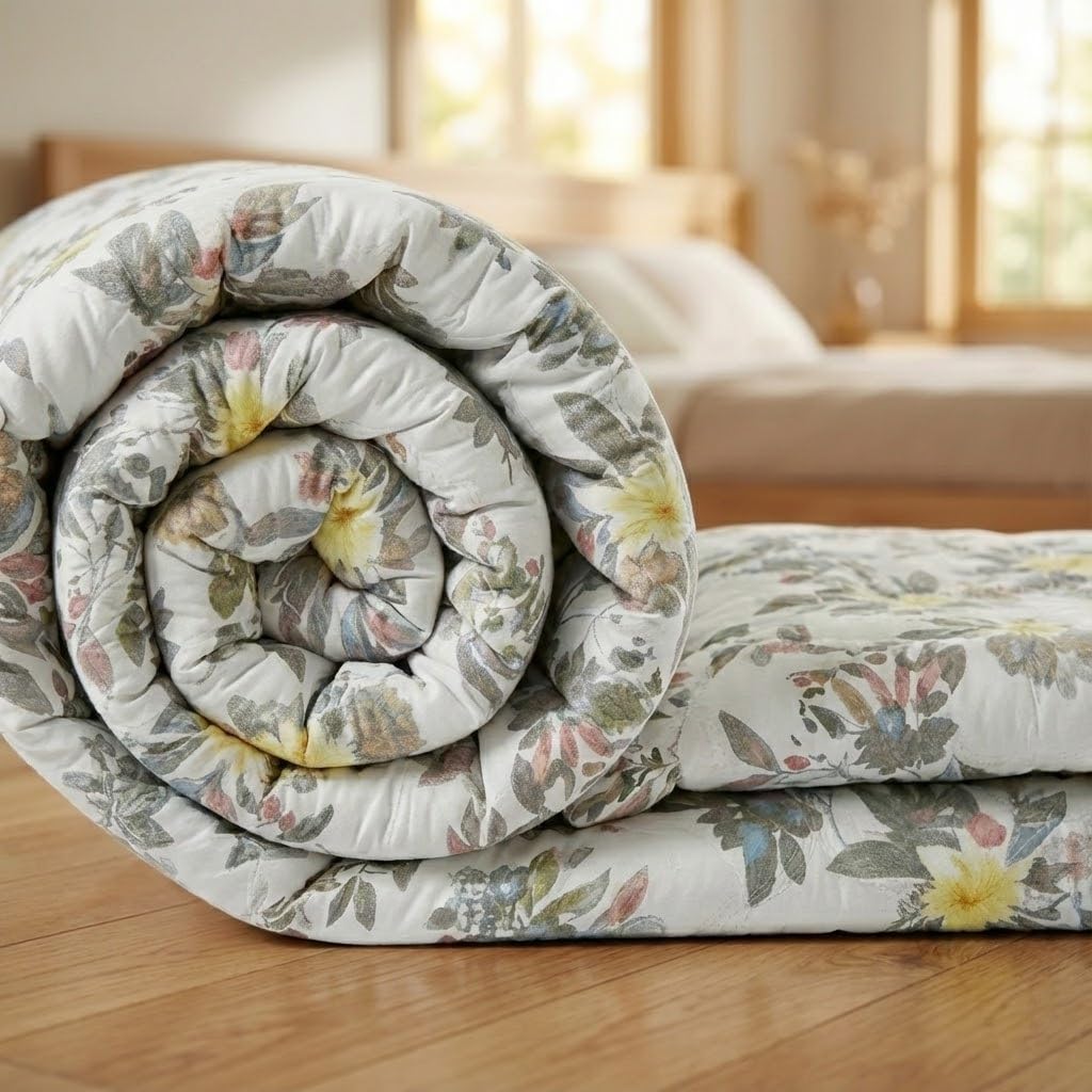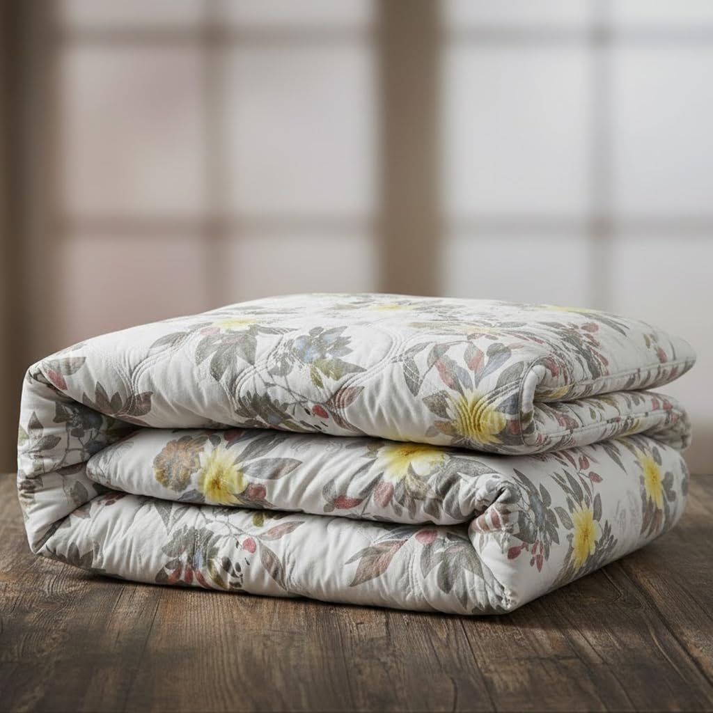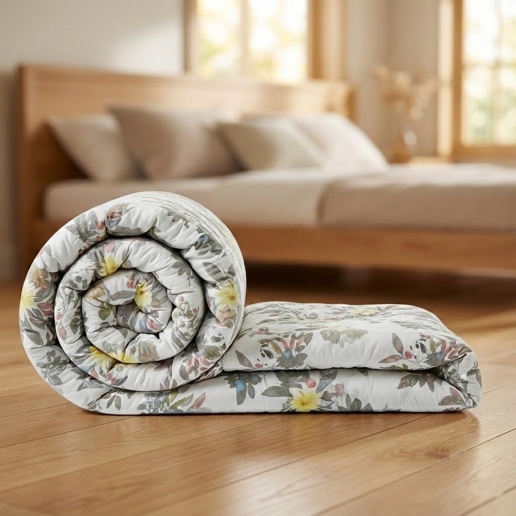 BENAVJI 220 GSM 100% Cotton Microfibre Reversible Comforter AC Blanket for Summer/Winter/Quilt Soft Breathable Floral Print Duvet Double Bed Size 230X250 CM