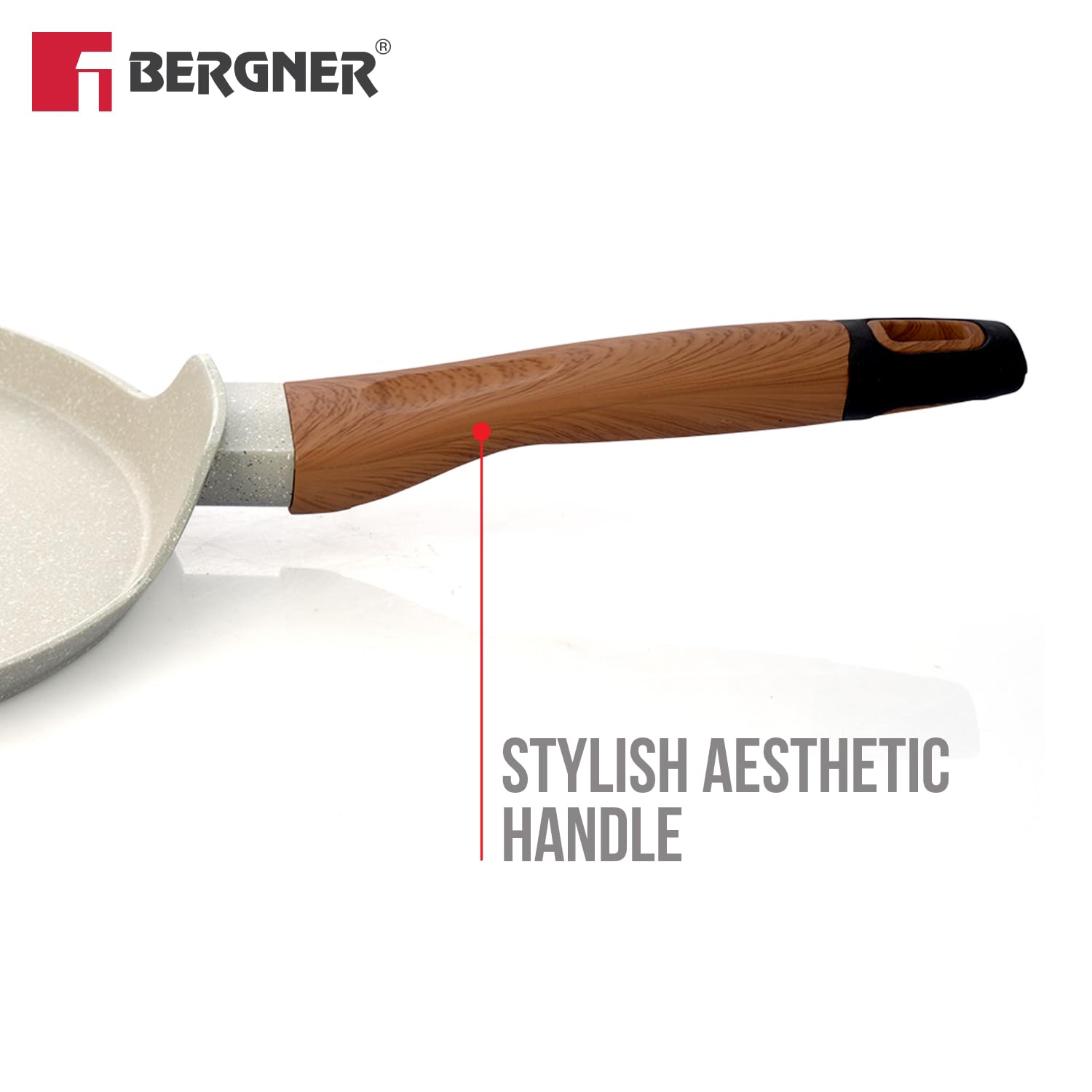 BERGNER Ivory Granite Non-Stick 2 Pcs Cookware Combo Set of 28cm Dosa Tawa and 24cm Frypan, 3-Layer Marble Healthy Coating, Rivetless Handle, PFOA Free, Forged Aluminium – Induction and Gas Ready