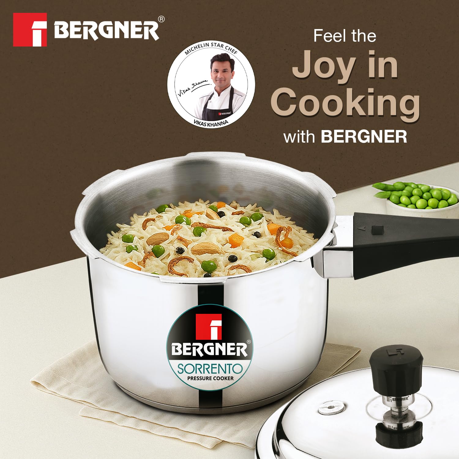 Bergner Sorrento Stainless Steel Outer Lid Pressure Cooker Combo – 2 Litre and 3 Litre Cooker, Triply Base, Heavy Bottom, Easy Open and Close, Healthy Cooking – Induction Bottom and Gas Stove Ready