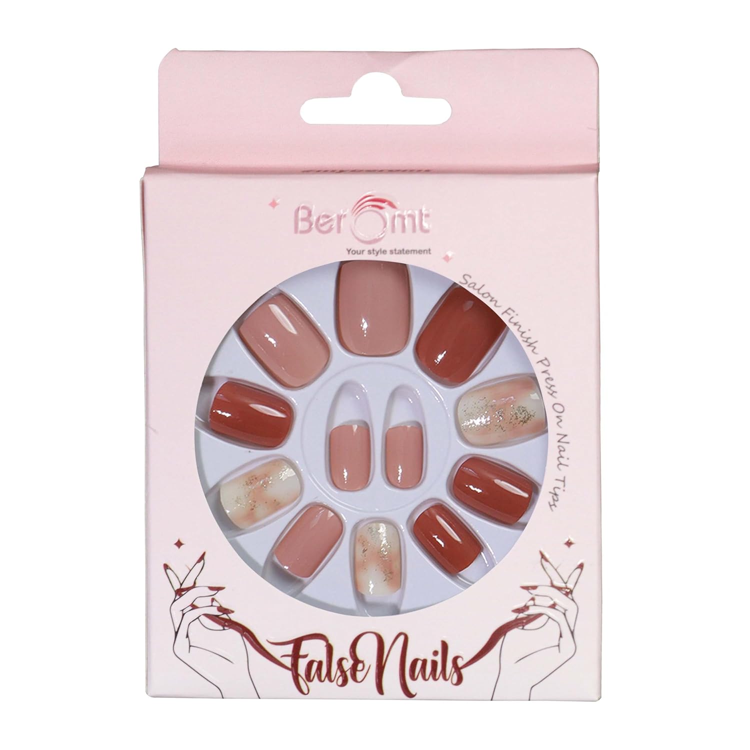 Recommended For Small and Medium Nail Bed Size Note – False Nails Box Contains- 12 False Nails of various sizes, Nail Glue Tab sheet with 12 jelly stickers Per Order Contains- 1 Nail Filer, 1 Cuticle Stick, 1 Alcohol Swab & 1 Glue Bottle You’ve always dreamt of those perfectly manicured & well-designed nails? Then we have a variety of designs for you to choose from the Beromt False Nails Collection. You don’t have to try so hard. You just have to get up, just be yourself & pick the perfect nail set for you. Your choice will protect your nails from any harmful chemicals. You may quickly beauty up your nails anytime and anywhere, without any tools. These are perfect for a party, wedding, or any other event. You don’t need to run to a nail salon every time that you have an occasion. It fits all kind of nails because of its variety in the sizes. These artificial nails are not a replacement, but an extension for natural nails to make your fingers look fabulous. Beromt False nail tips come in various designs & effects. These artificial nails can be reused several times and can change other style of nails at home easily according to your dress, your mood or the occasion.