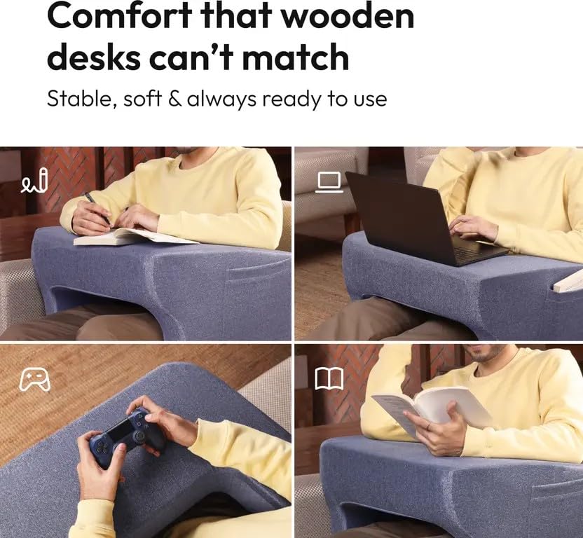 Holds Upto 17 Inch Laptops – Seamlessly accommodating laptops up to 17 inches, this lap desk pillow is perfect as a small laptop table or sofa laptop table for anyone needing a flexible workspace, either on sofa, bed, or even floor. Its lightweight build and extra armrests make it easy to move from bed to floor, offering cushioned support anywhere you need it.