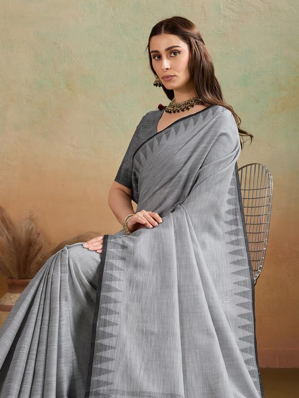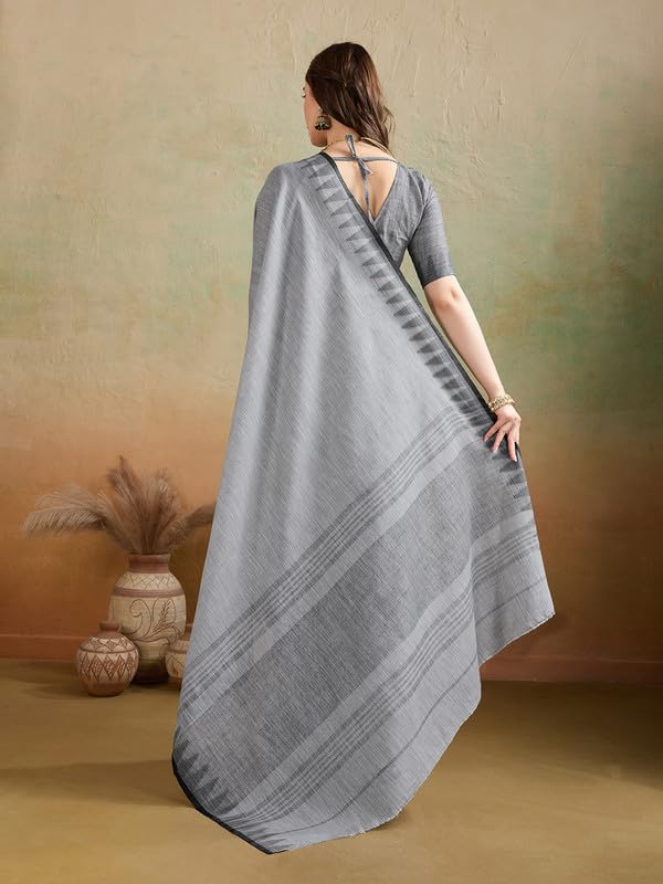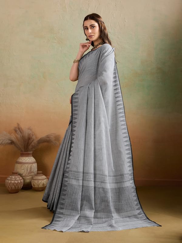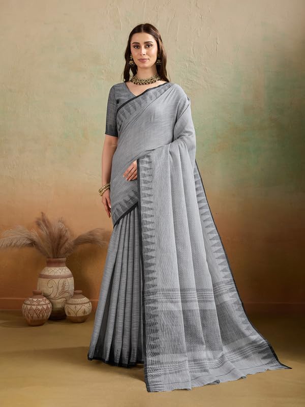 • BFM Linen Handloom Saree with Solid Border & Unstitched Blouse Piece | Soft Lightweight Summer Daily & Festive Comfort Wear Saree for Women