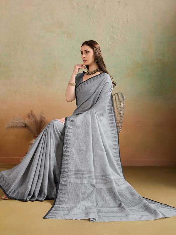 BFM Linen Handloom Saree with Solid Border & Unstitched Blouse Piece | Soft Lightweight Summer Daily & Festive Comfort Wear Saree for Women