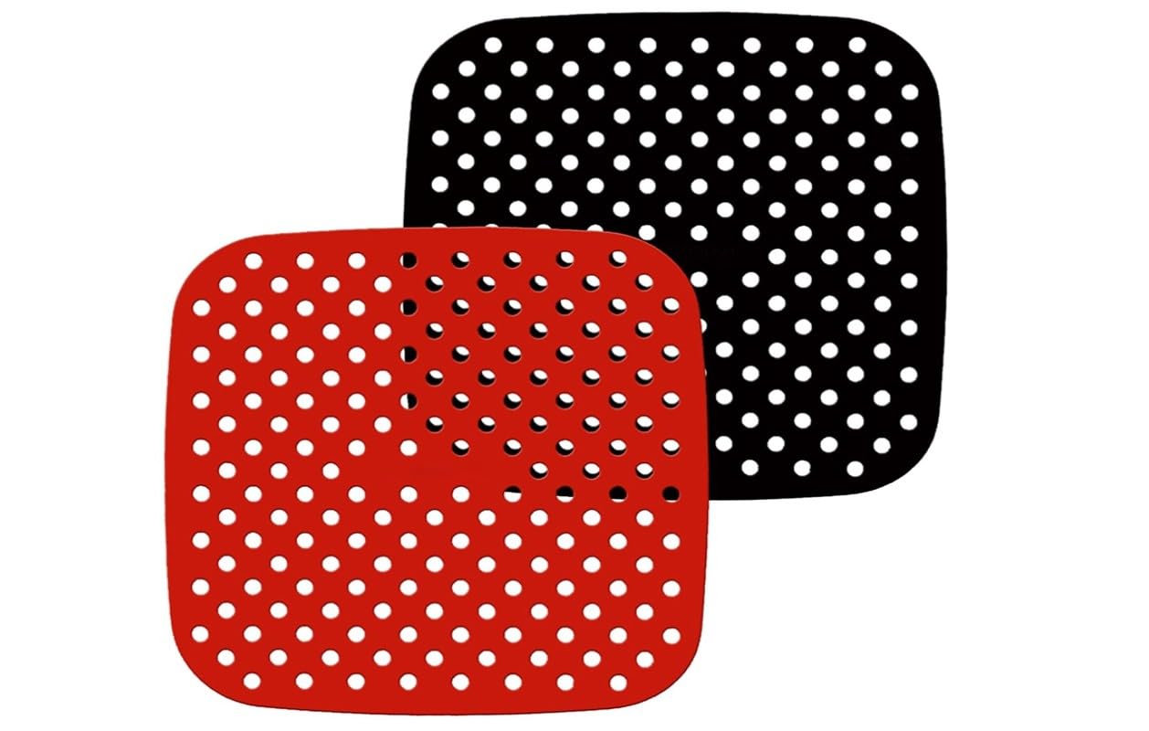 BHOOLU&GOOLU Re-Usable Silicone Square Shape Air Fryer Mat – (Black And Red) – 2 Pcs/Set