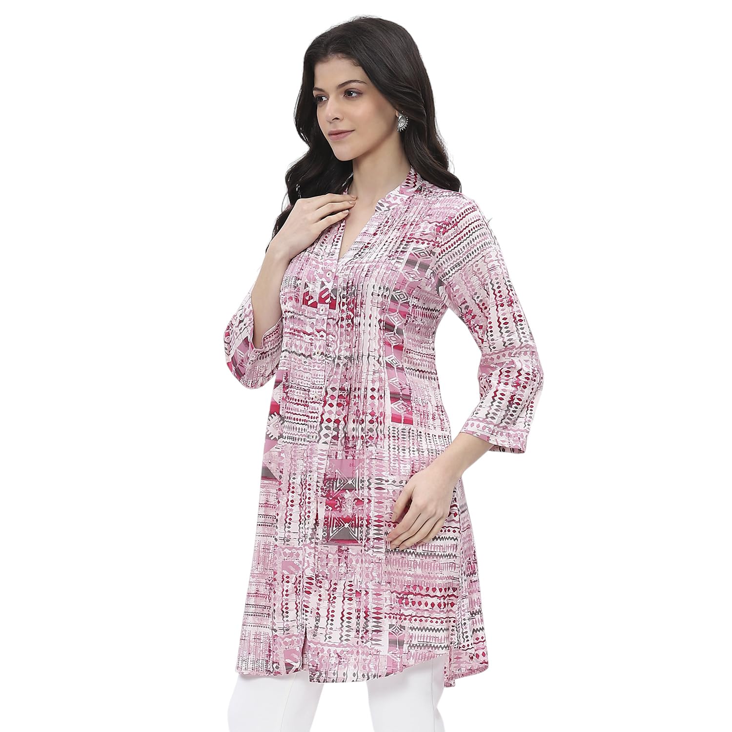 Biba women Pink Viscose Rayon Printed Short Kurta