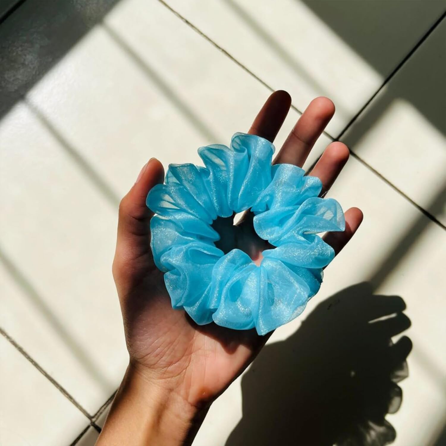 Big Organza Scrunchy Large Hair Ties | Oversized Scrunchies | Super Stretchy Hair Scrunchie for Thick Hair Elastic Jumbo Bling Hair Ties (Sky Blue, Pink, Peach)